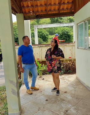 Secretário Marquinhos da Obra conversa com a designer Bianca Boaretto durante a inspeção e início da limpeza