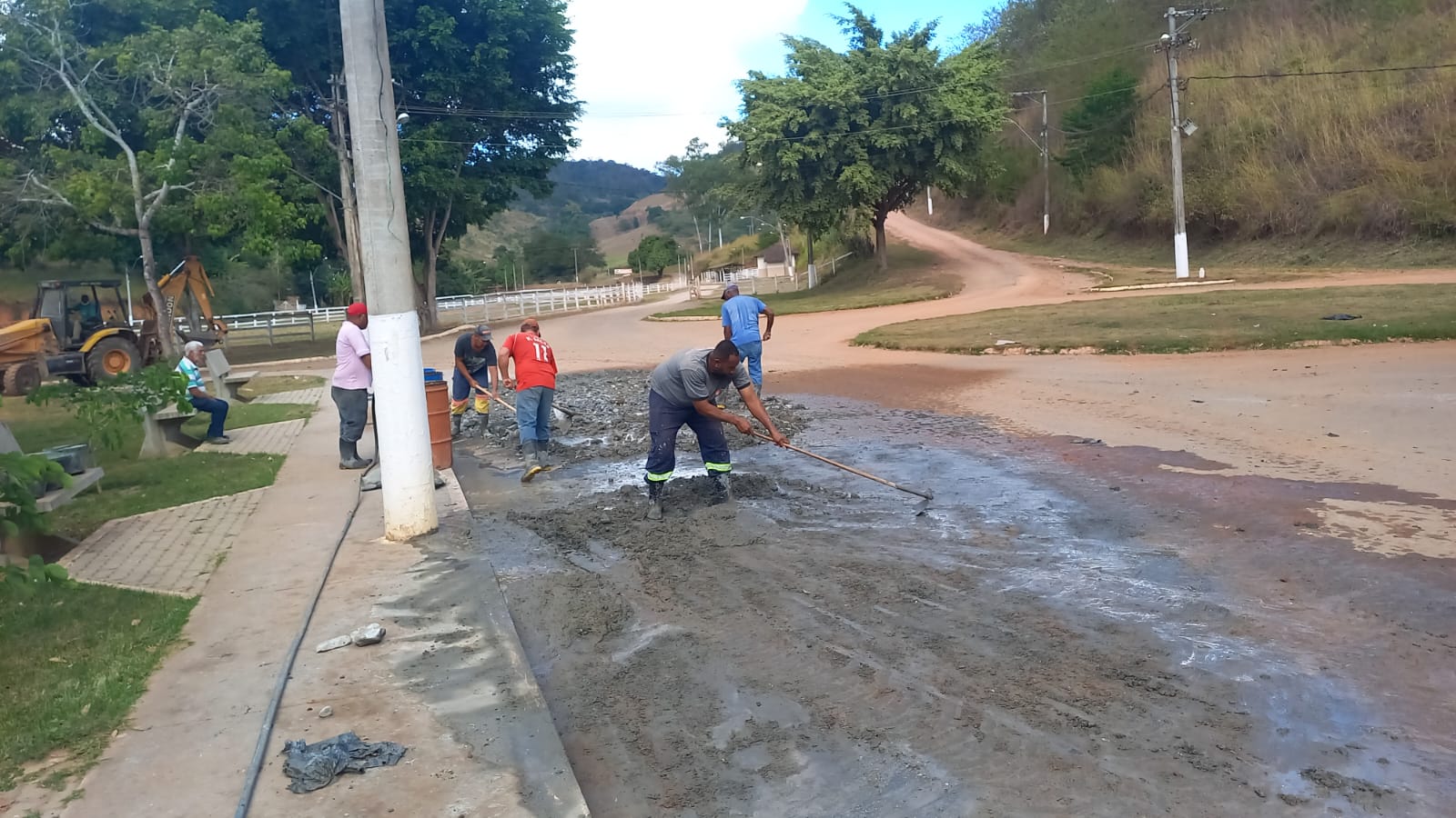 Servidores contam com o apoio da máquina retroescavadeira para dar sequência aos trabalhos