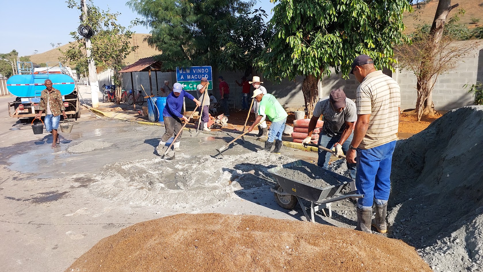 Funcionários da Secretaria de Obras e Serviços Públicos aceleram as ações de concretagem para dar sequência às benfeitorias no local