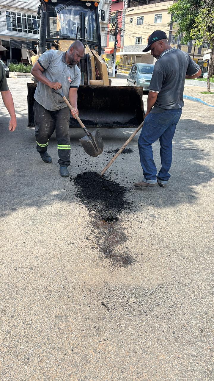No centro da cidade, os trabalhadores também passaram colocando o asfalto nas vias como parte da Operação Tapa Buraco