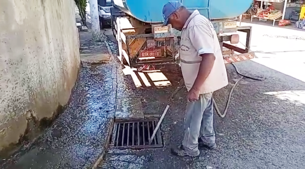 Os bueiros de águas pluviais receberam jatos de água para sua desobstrução