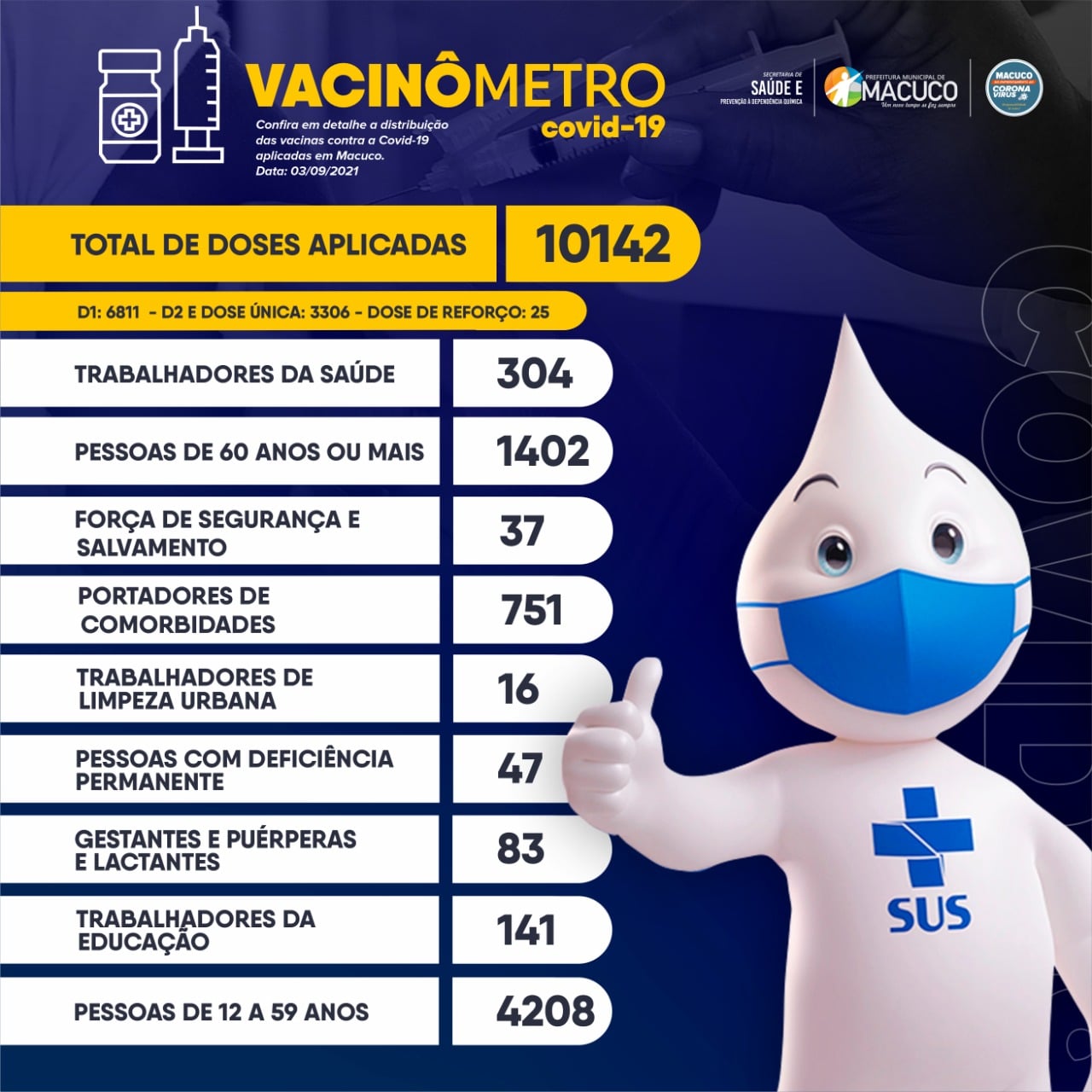 Os esforços da Gestão Municipal, através do incansável trabalho desenvolvido pelos profissionais da Secretaria de Saúde, estão se convertendo em ótimas notícias para a população de Macuco, especialmente no que se refere à aplicação das doses da vacina contra o coronavírus, que segundo especialistas tem sido praticamente impecável.