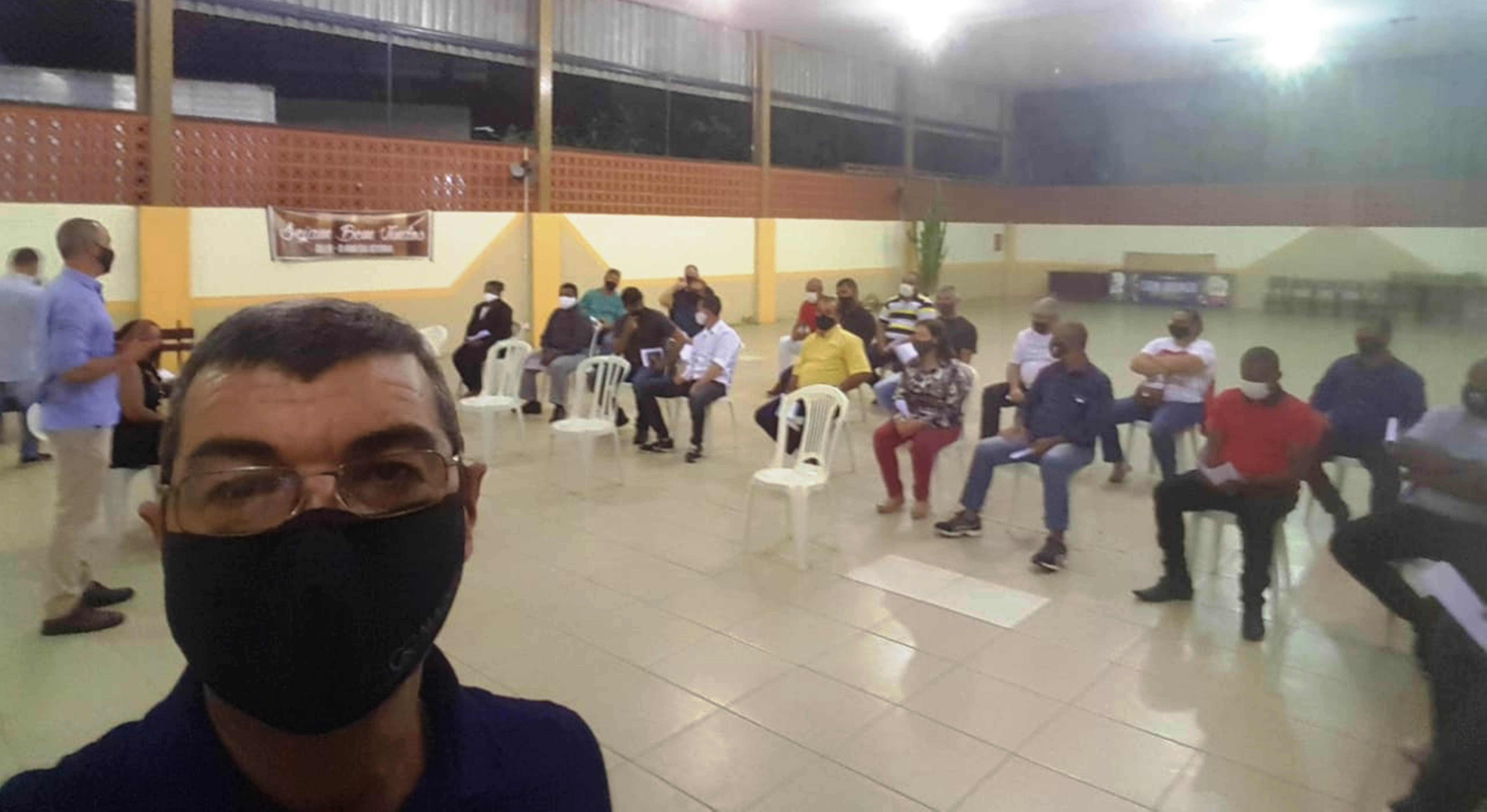 Na sede da Terceira Idade, membros das igrejas Assembleia de Deus Catedral da Vitória, Ministério de Cordeiro, Badu e Boa Esperança, Luz para o Mundo, Mundial do Poder de Deus, Fogo e Glória, Sara Nossa Terra, Brasil para Cristo Volta da Ferradura, Maranata, Metodista, Batista e Presbiteriana conversaram sobre prevenção à COVID-19 com o coordenador da Vigilância Sanitária Marcelo Juliano e os profissionais Elisângela de Macedo, Wagner Bastos e Geziani Gomes.