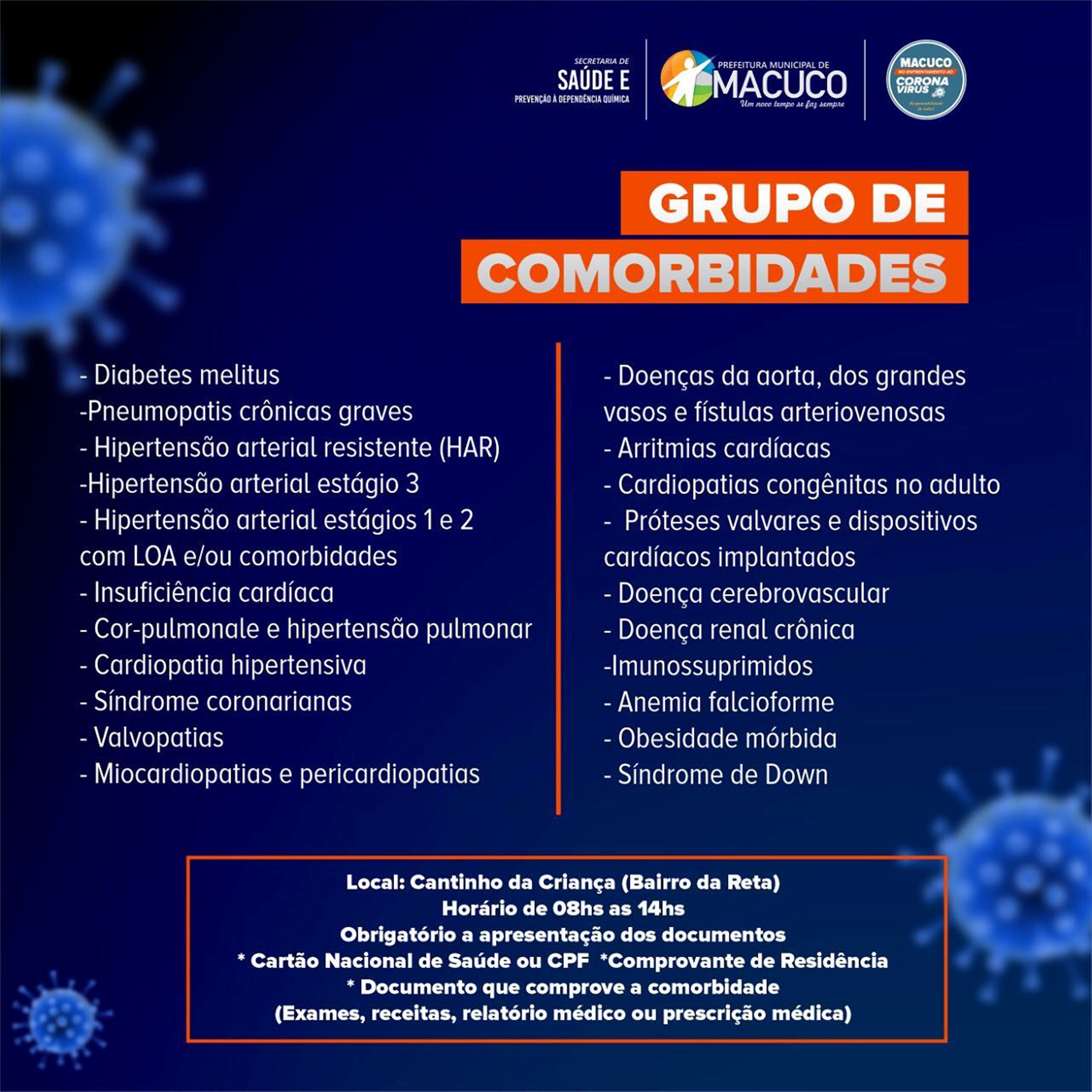 Imagem esclarece sobre todos os grupos de comorbidades a serem vacinados