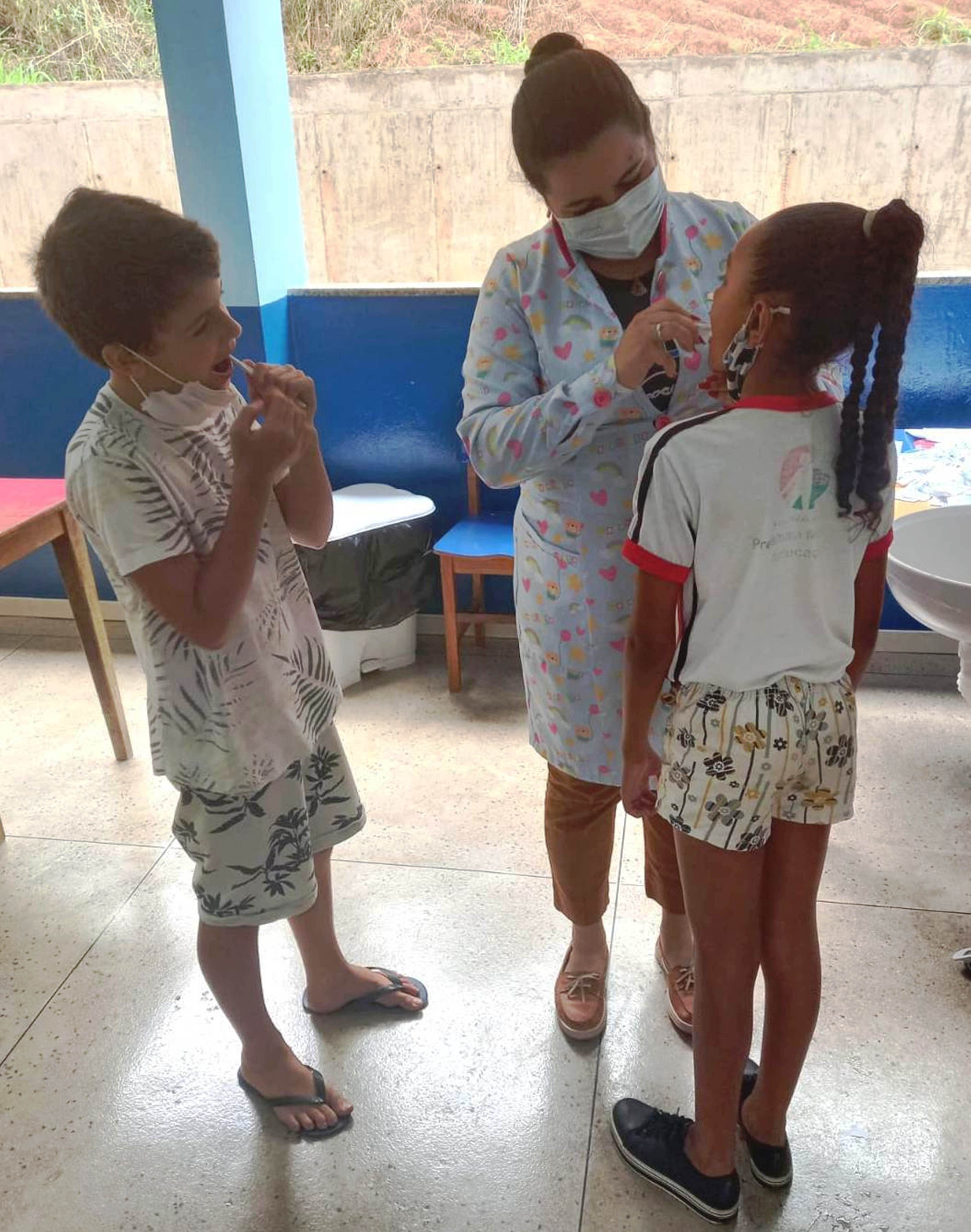 Dentista Gabrielle Boaretto realizou orientações individualizadas para garantir que os estudantes receberiam as lições corretamente