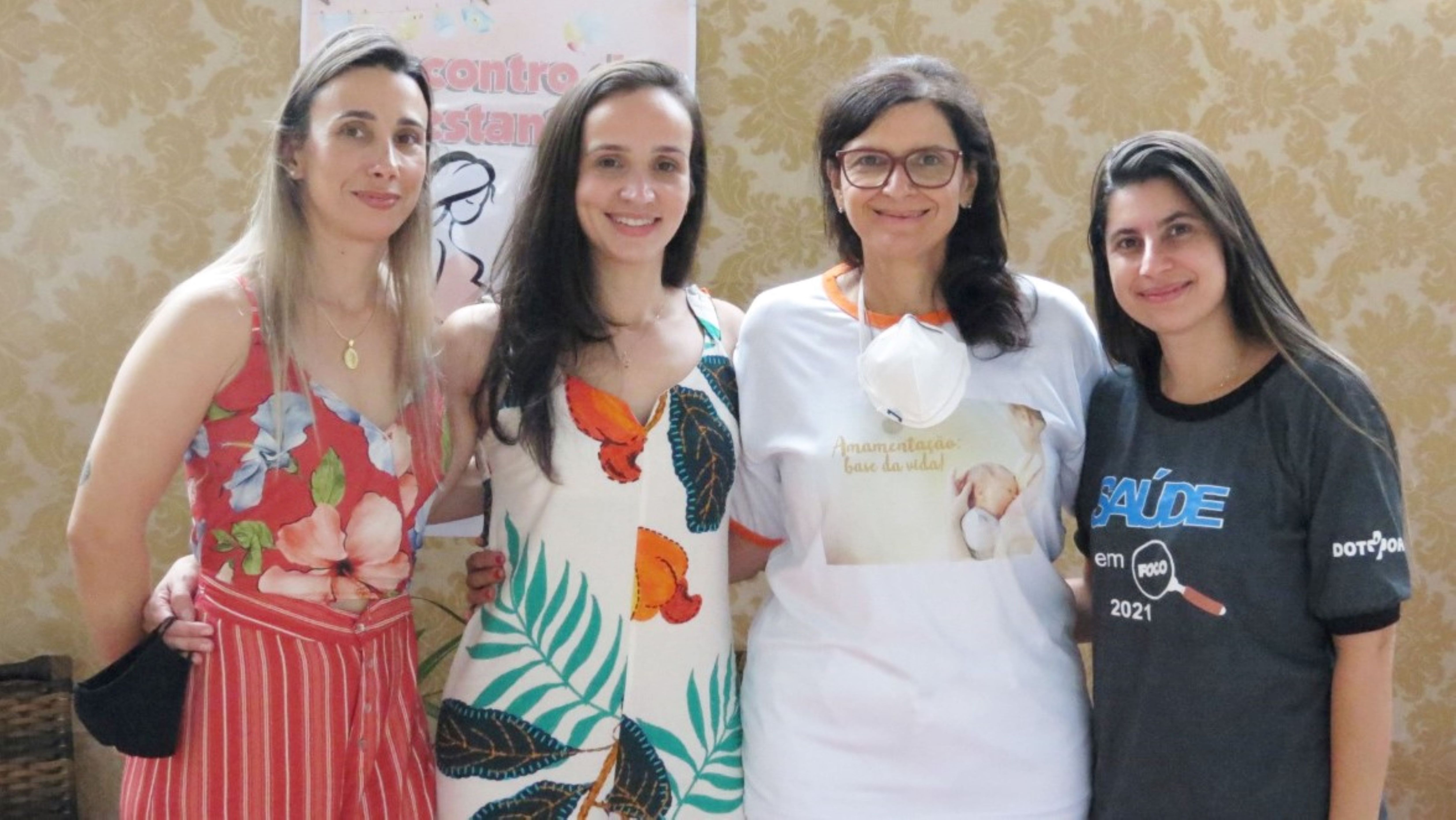 As enfermeiras Verônica Golinelle, Diana Bard e Tamiris Martins com a médica Andreia Gentil (de branco) durante o evento