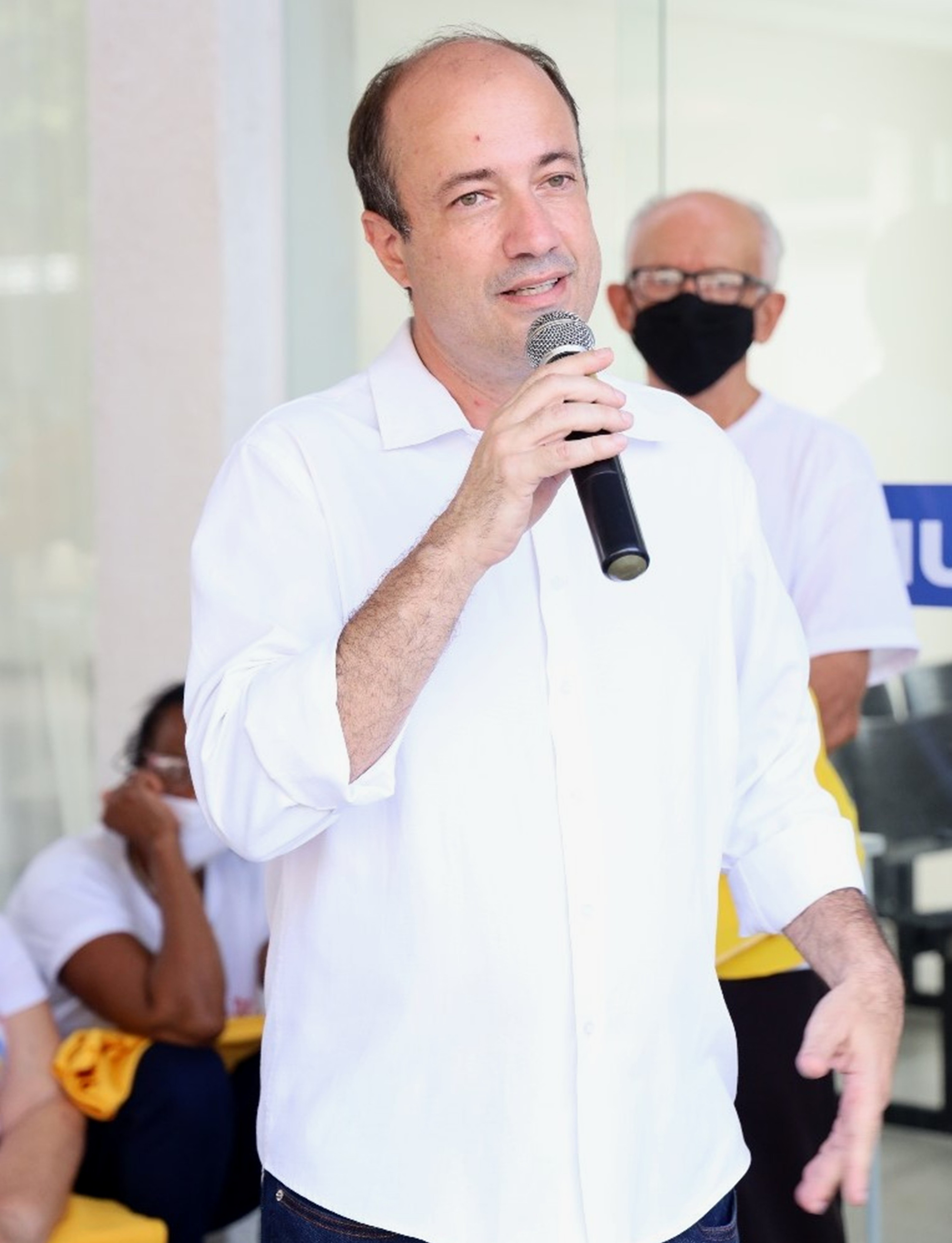 Secretário Juninho da Saúde discursa durante a inauguração da Unidade Ampliada de Saúde Doutor Luiz Fabiano Oliveira e Silva