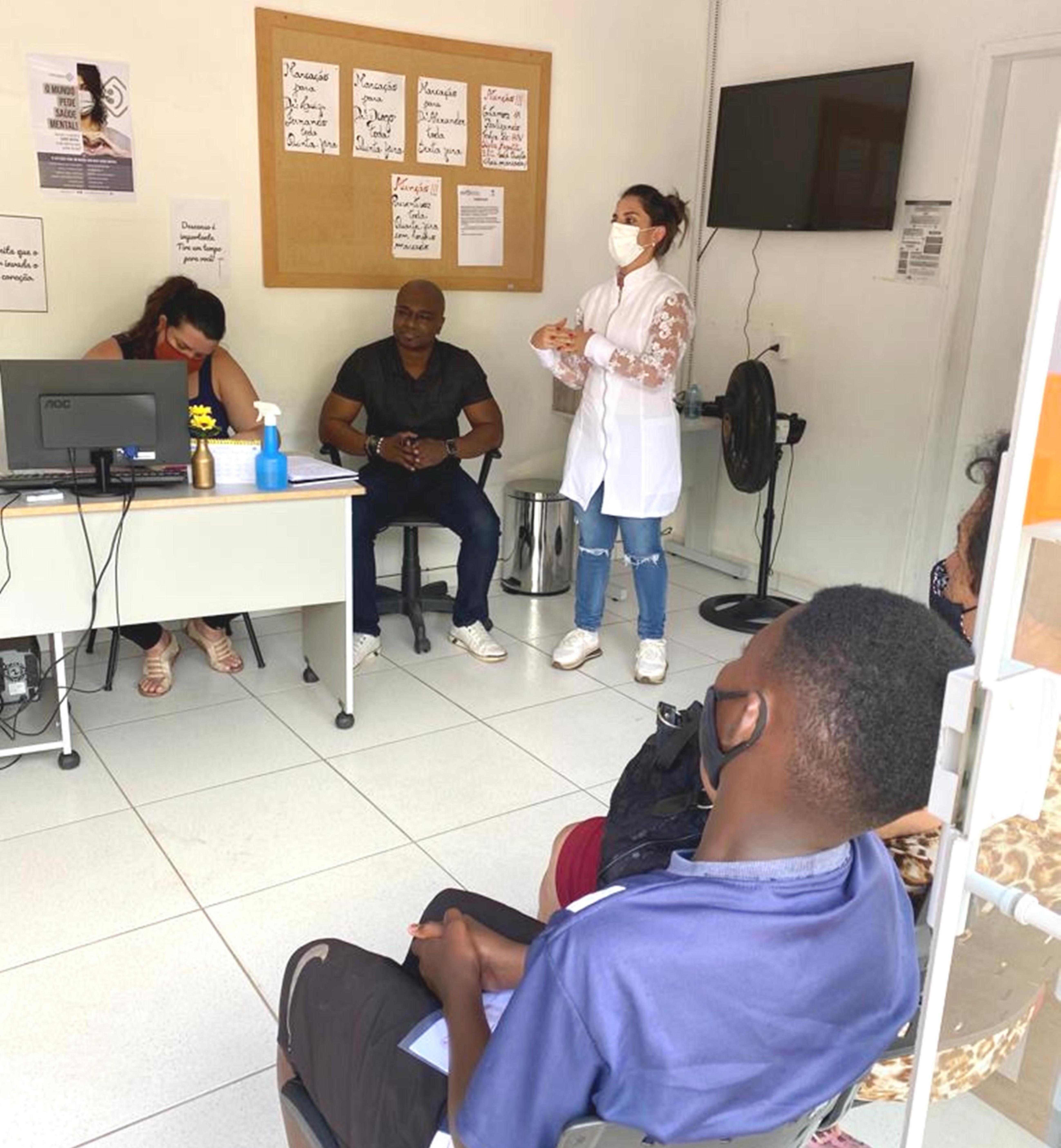 A enfermeira Keila de Oliveira orientou os usuários quanto ao combate à hanseníase, expondo a importância do diagnóstico precoce e início rápido do tratamento, já que a doença, se descoberta e tratada a tempo, pode evitar sequelas. No segundo momento o psicólogo Roberto Charles Monteiro e a enfermeira Anna Carolina Lima do Amaral conseguiram interagir com os pacientes falando sobre saúde mental.