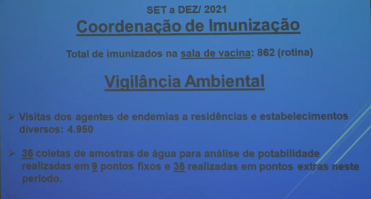 Quanto aos relatos sobre a Atenção Básica no Terceiro Quadrimestre de 2021 em Macuco, também foram evidenciados números significativos. Consultas médicas ofertadas à comunidade macuquense: Clínica Médica, 1.646; Ginecologia Obstetrícia, 541; Pediatria, 440; Enfermagem, 934; Cardiologia, 207; Oftalmologia, 217; Fisioterapia, 403; e Ortopedia, 317. Ainda aconteceram 4.141 atendimentos no Pronto Atendimento Municipal; 3.601 Visitas Domiciliares; e 4.037 procedimentos de Enfermagem.