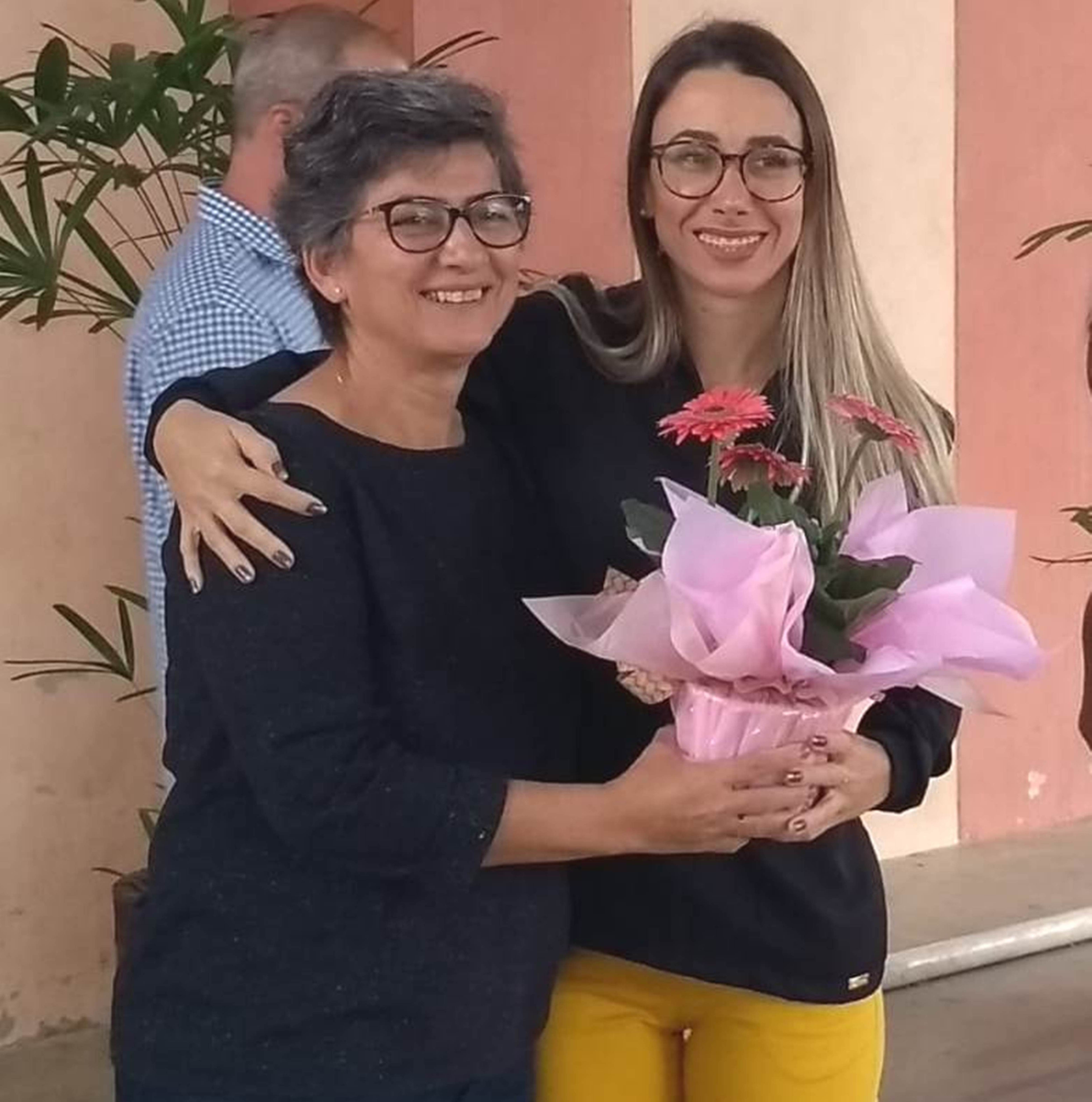 Coordenadora Pedagógica do Colégio, Sônia de Fátima Thurller demonstrou seu carinho com a enfermeira Diana Luterbach