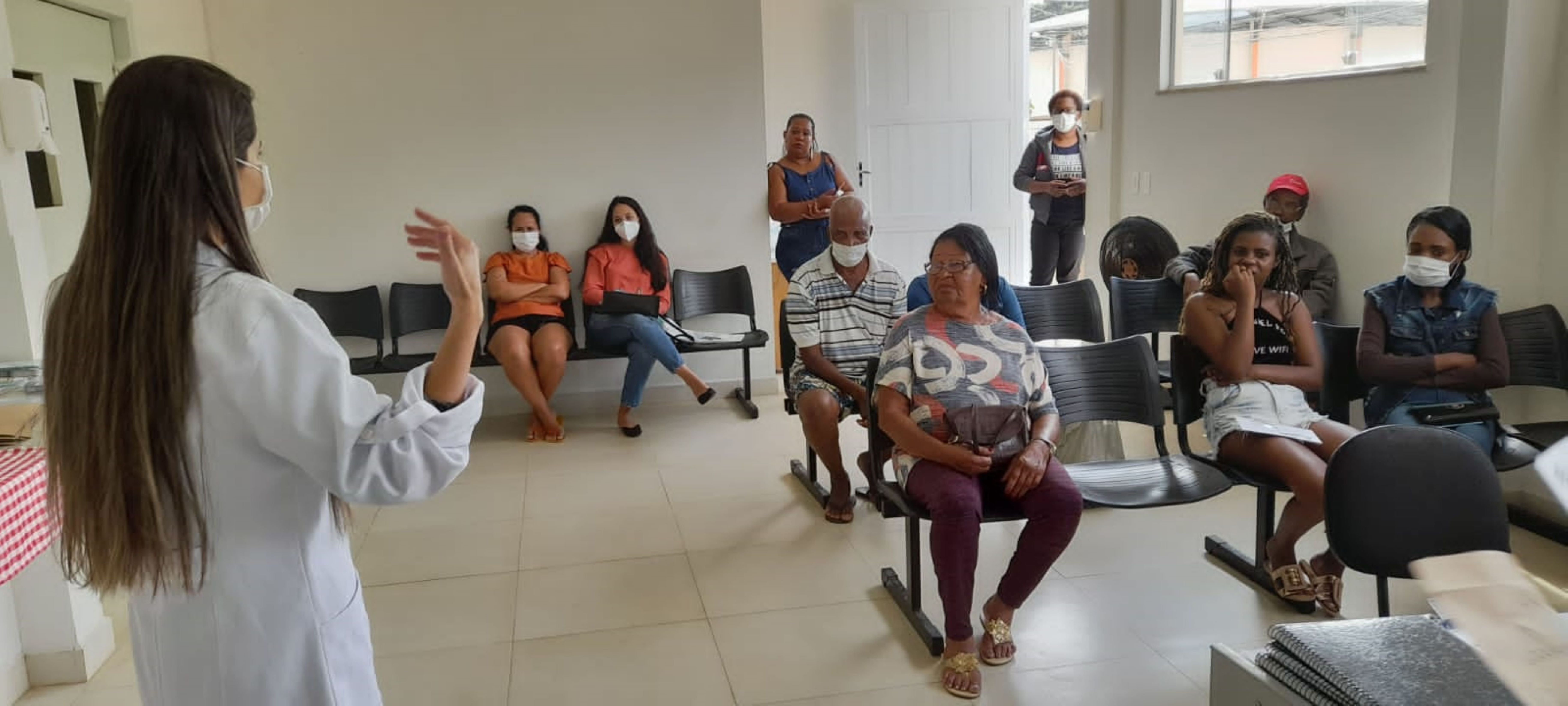 Usuários dos serviços de saúde do bairro da Reta acompanhando as explicações da enfermeira sobre o tema