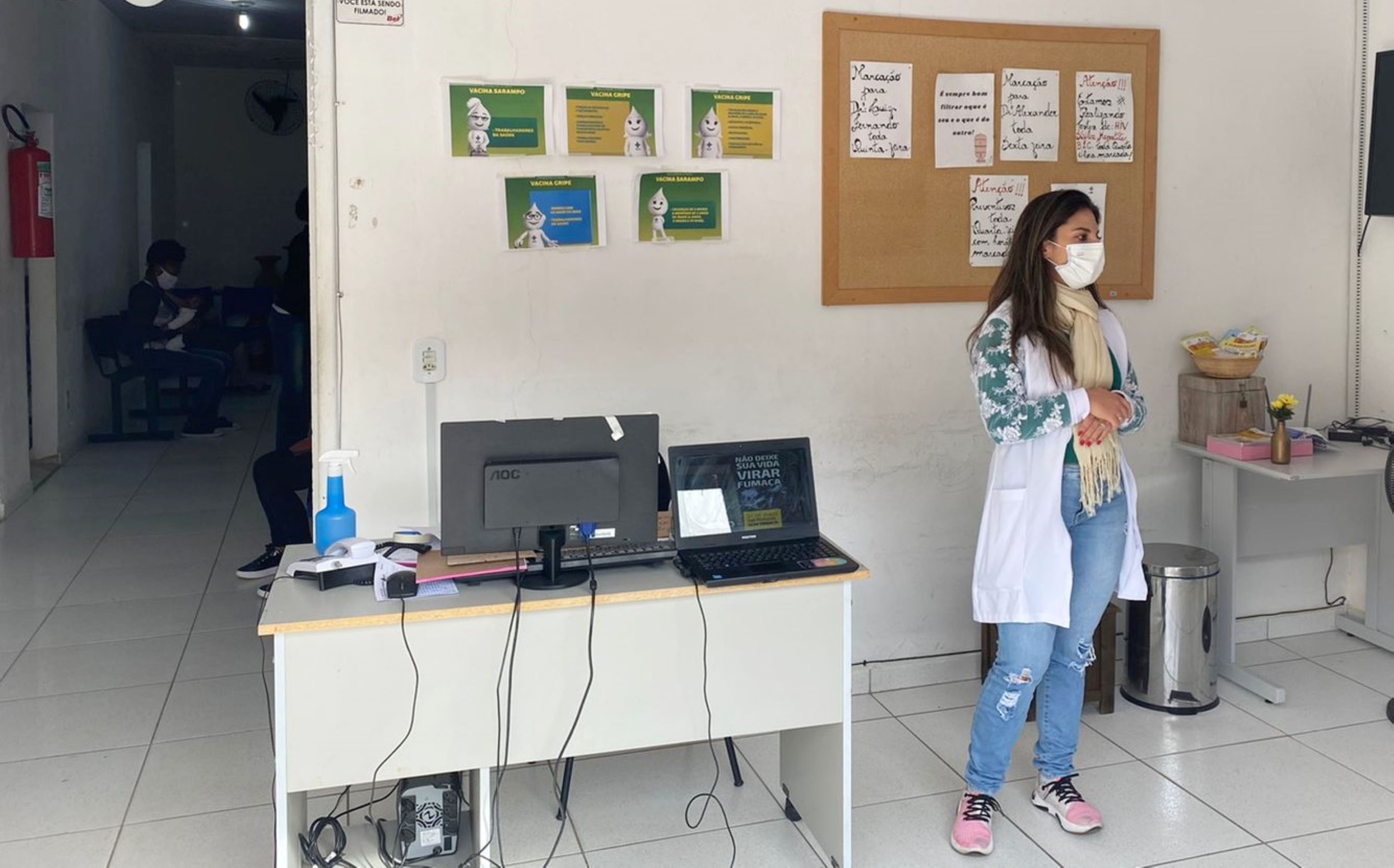 Enfermeira Anna Carolina descrevendo na ESF da Barreira todos os problemas que o mau hábito de fumar pode acarretar