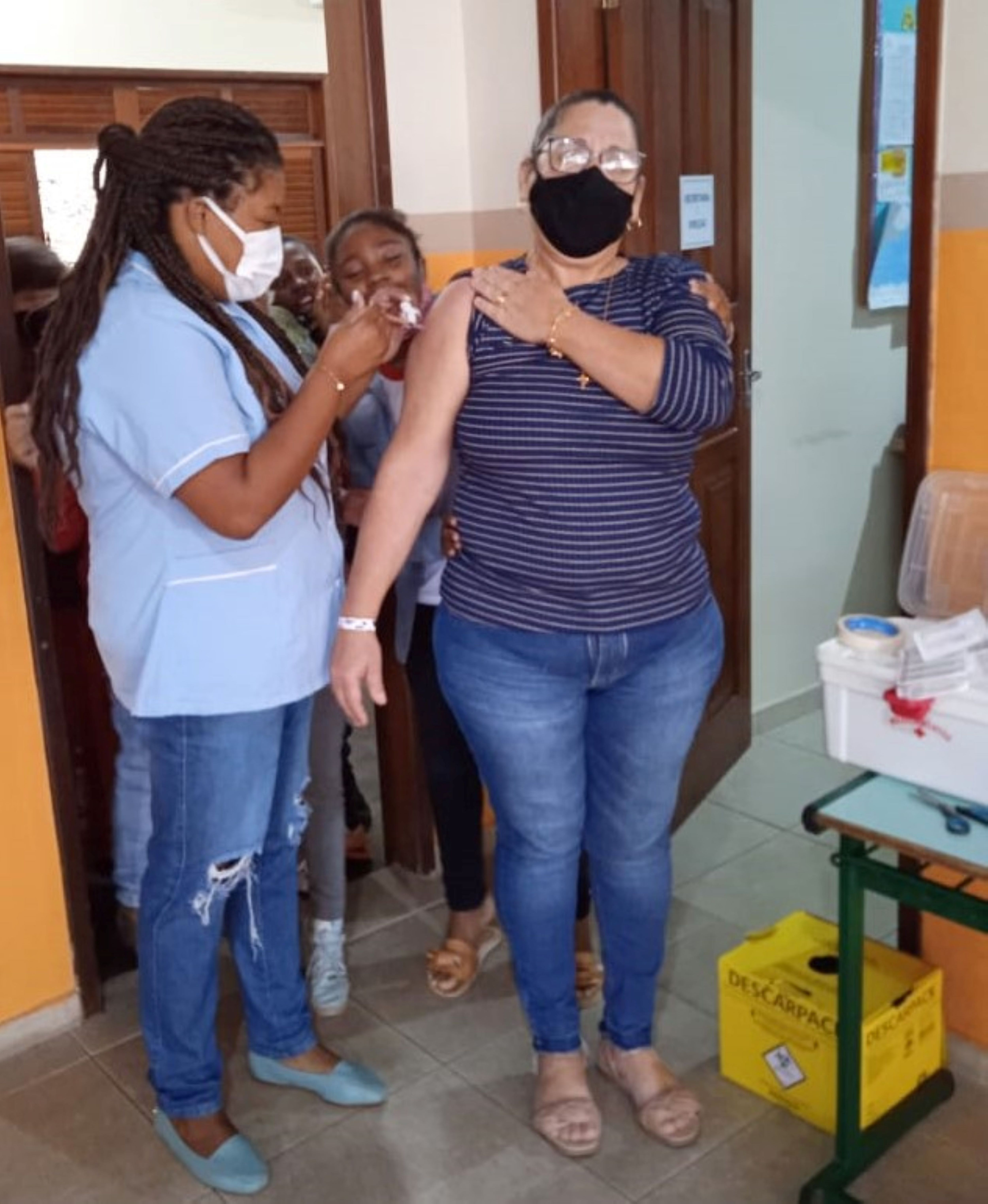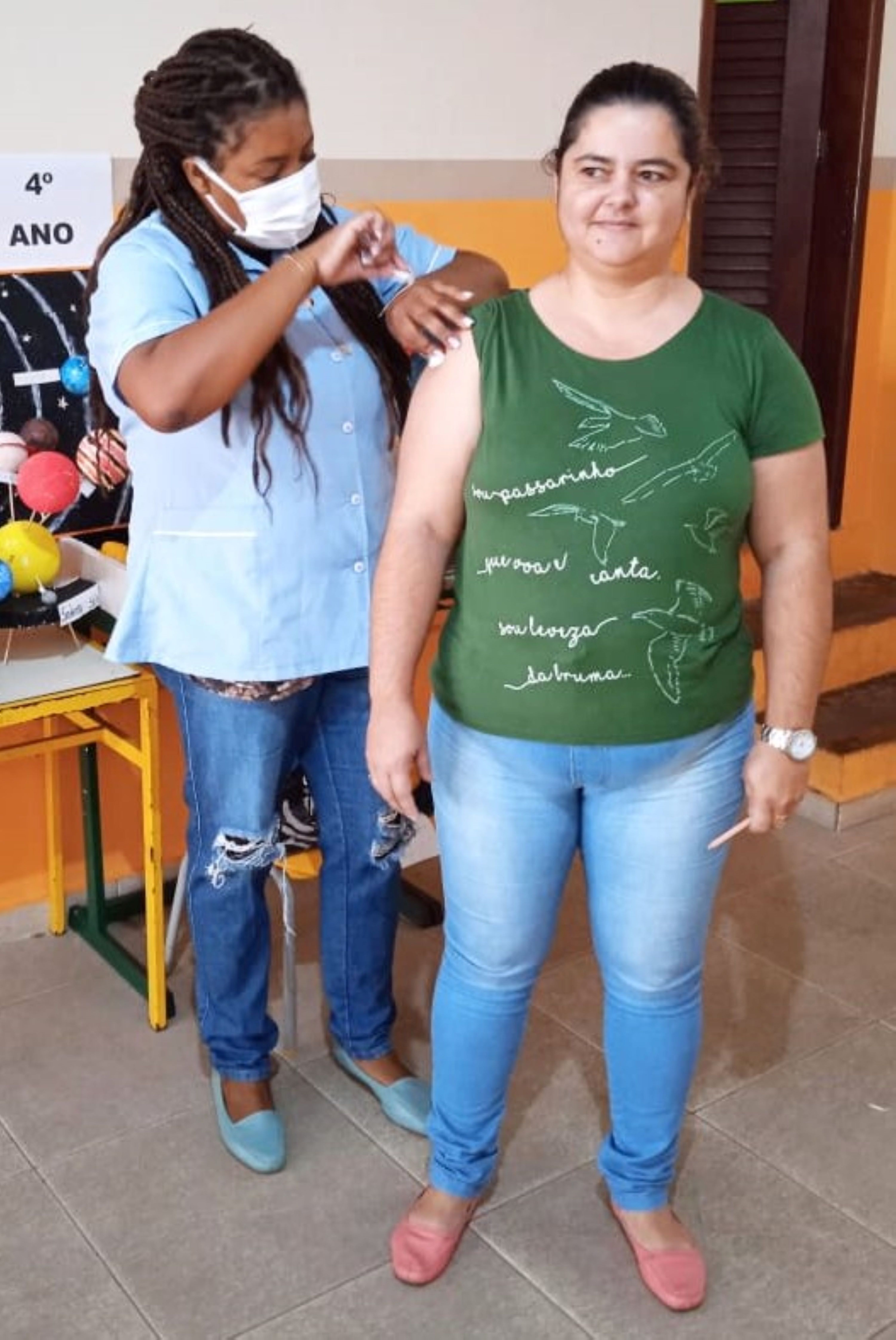 Mais uma das profissionais macuquenses que foi imunizada graças à parceria entre as secretarias de Saúde e Educação