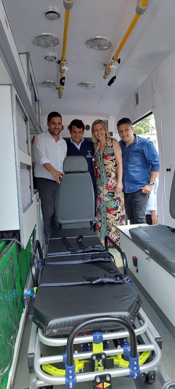 A prefeita Michelle Bianchini acompanhada do secretário Geral de Governo João Vitor Pontes e da Secretária Municipal de Saúde Ana Paula Gonçalves, recebeu das mãos do Governo do Estado do Rio de Janeiro, na cidade de Nova Friburgo, uma nova ambulância para a municipalidade.