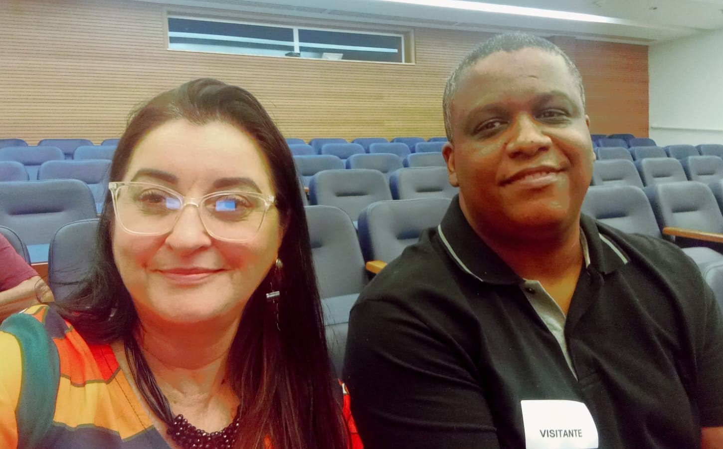 Selfie da secretária Ana Paula e coordenador Ivan momentos antes do início da reunião no Rio de Janeiro