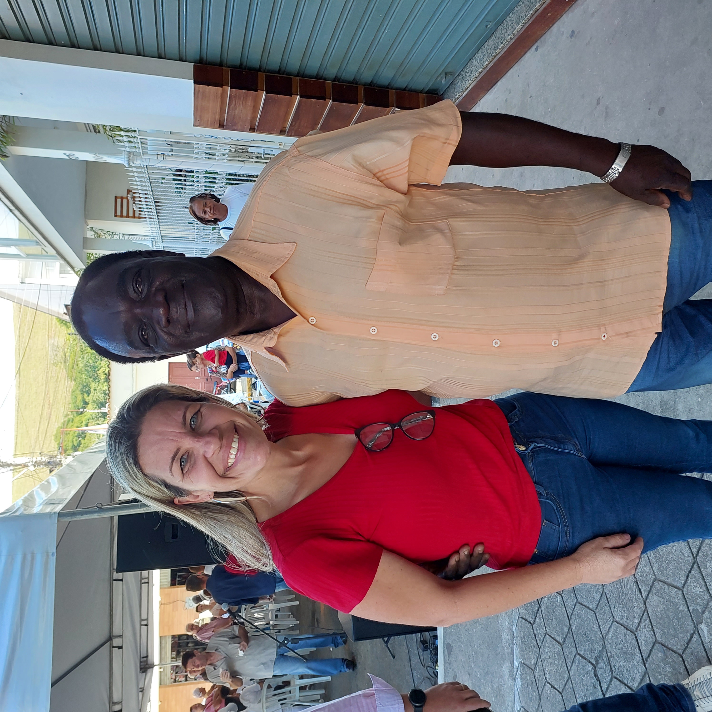Prefeita Michelle Bianchini ao lado do presidente do Conselho Municipal de Saúde de Macuco, Rivaldo Bada