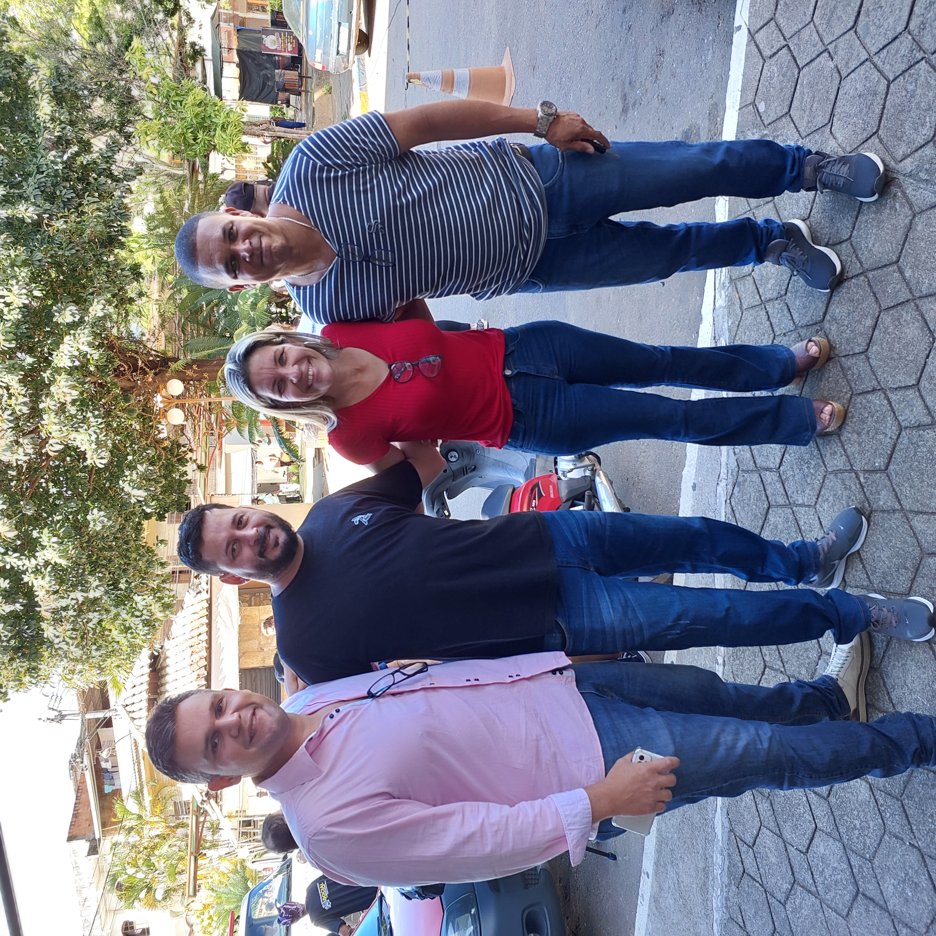 Secretário de Governo João Vitor Pontes e prefeita Michelle Bianchini entre os vereadores macuquenses Bruno Miranda e Alberto Herdy