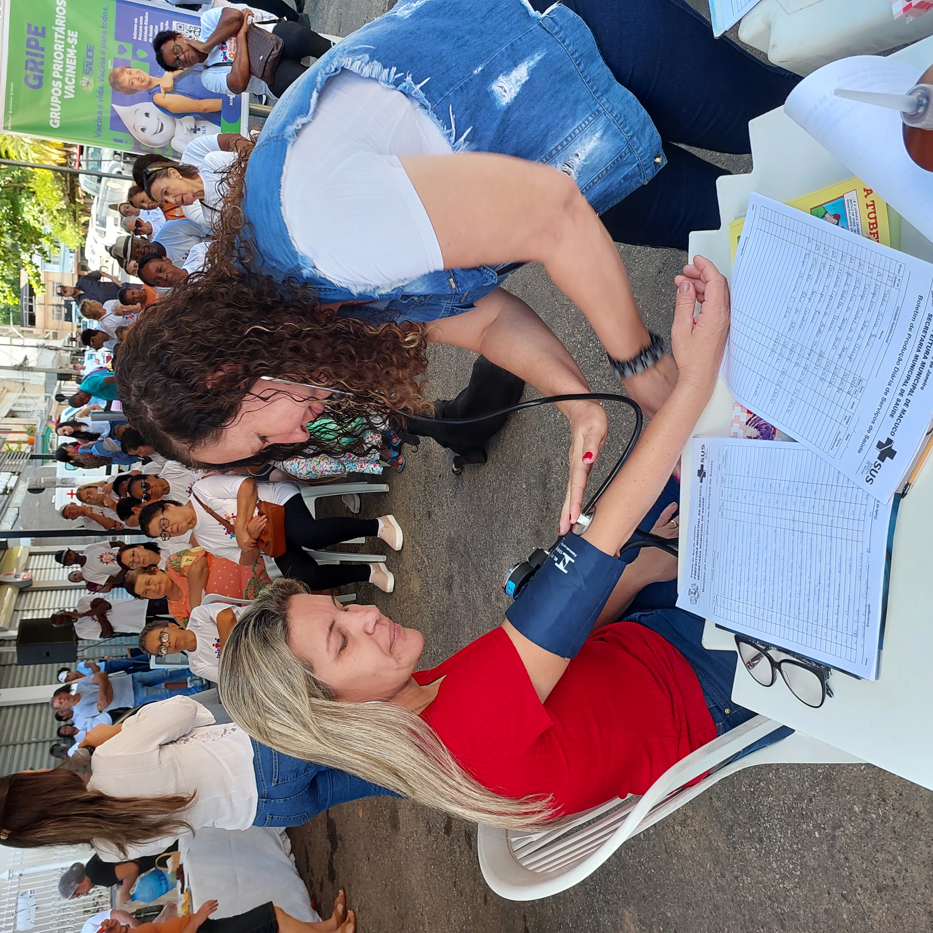 Aferição de pressão arterial foi uma das ações que fizeram parte da programação de saúde desta quarta-feira