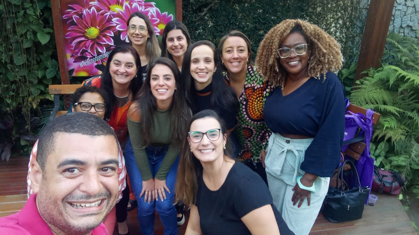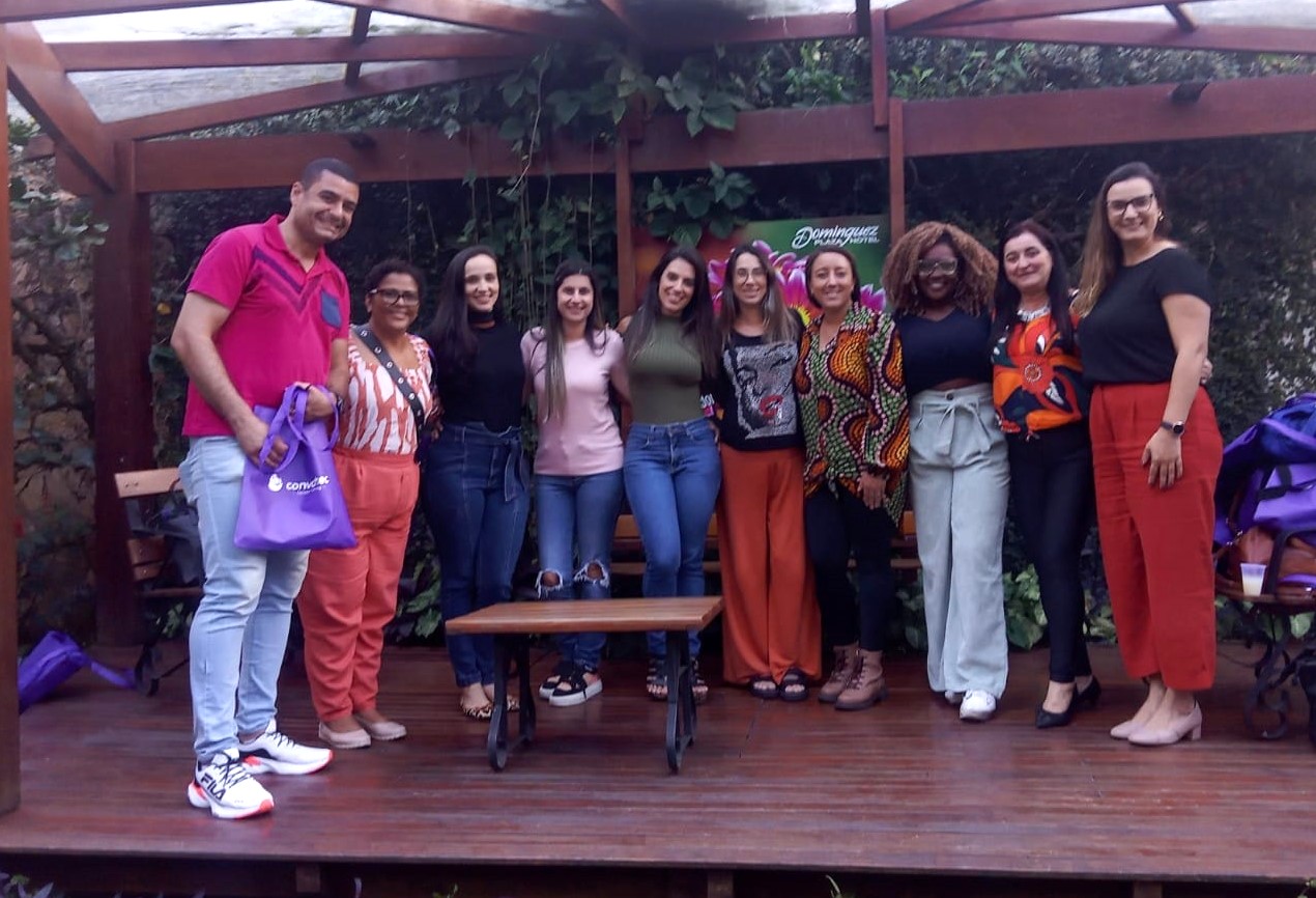Selfie exibindo os sorrisos dos integrantes da equipe de Macuco participante do workshop comprova a satisfação pelo aprendizado