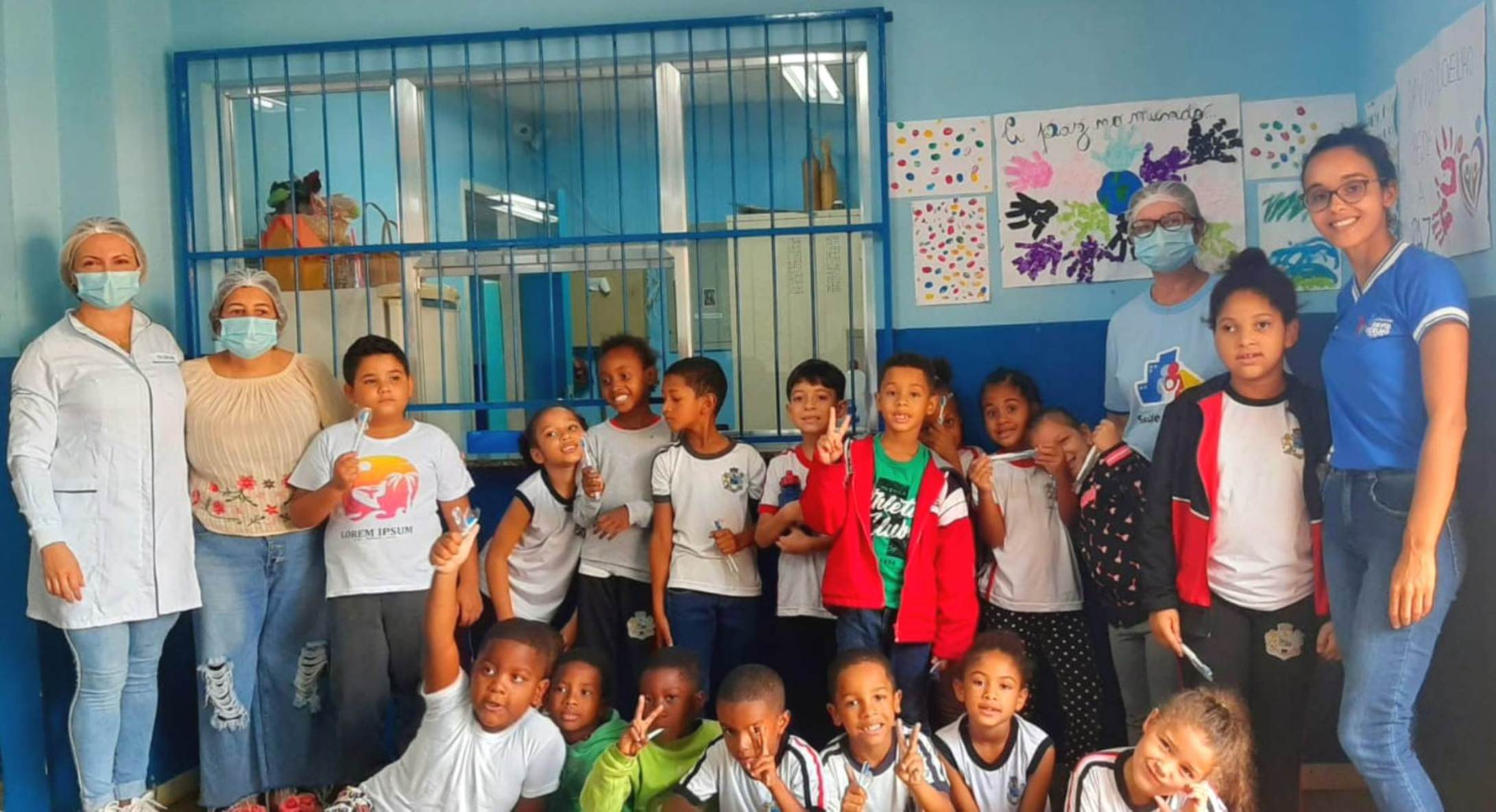 E não parou por aí. Aproveitando a ação, elas conversaram de forma lúdica com a garotada visando à conscientização sobre a real importância da manutenção de uma correta e periódica higiene bucal e explicaram o porquê do flúor ser um elemento químico tão importante nesse contexto, já que é através dele que é possível evitar a perda de minerais nos dentes, além de também impedir o desgaste causado pelas bactérias formadoras da cárie e substâncias ácidas presentes na alimentação diária.
