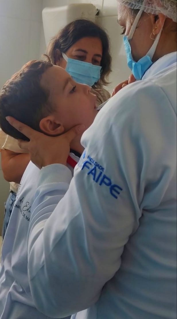 Mais um dos meninos que passaram pelo aprendizado com a equipe de odontologia que integra o Programa de Saúde nas Escolas