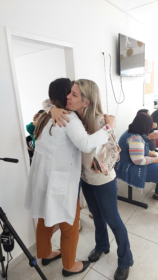 Antes de deixar o Centro de Saúde, o abraço afetuoso da prefeita Michelle Bianchini na enfermeira Michele Werneck