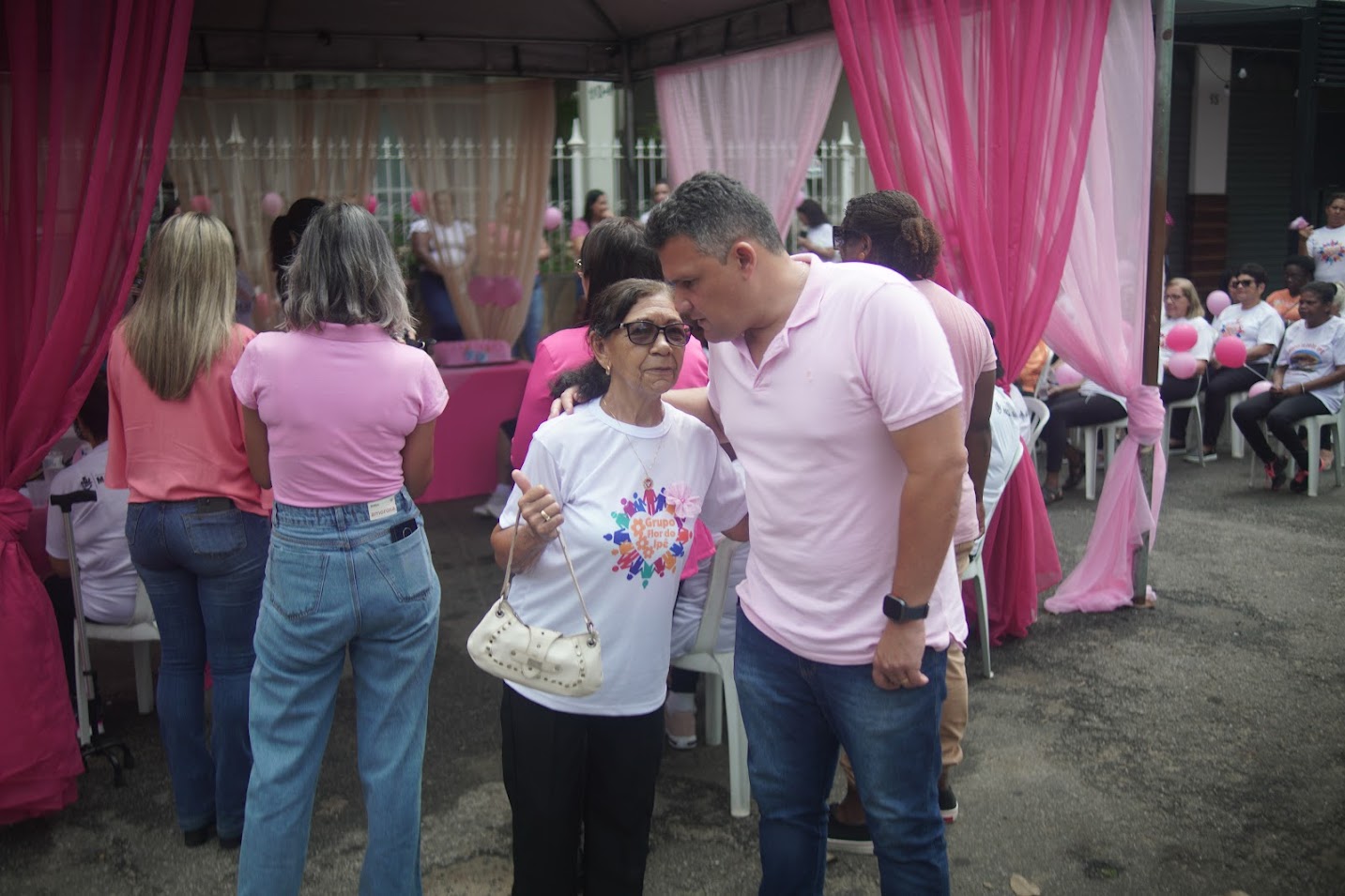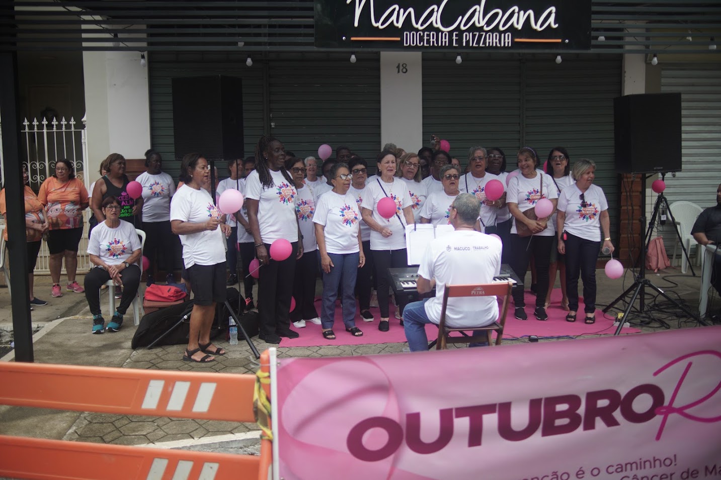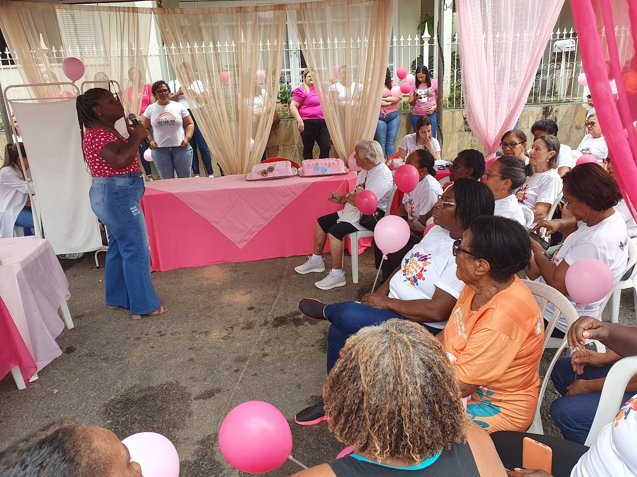 Além disso, a Passeata ‘Outubro Rosa’ contou com a emocionante apresentação do Coral Flor de Ipê, com talentosas integrantes da ‘melhor idade’ de Macuco e regido pelo maestro Marcelo Juliano. O evento também teve um momento de descontração, com a servidora Tatiana fazendo um alerta bem-humorado sobre a importância do autocuidado e do amor próprio. A celebração foi encerrada com um delicioso 'bolo rosa', simbolizando o compromisso contínuo com a causa do câncer de mama.