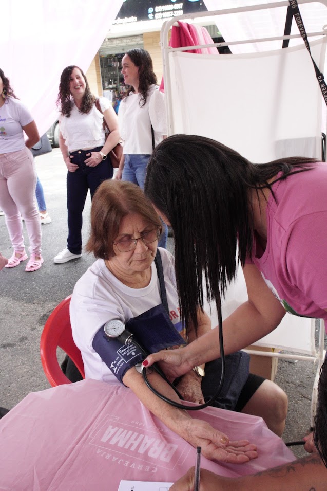 Pessoas da terceira idade também passaram pelo processo de aferição da pressão arterial durante o evento