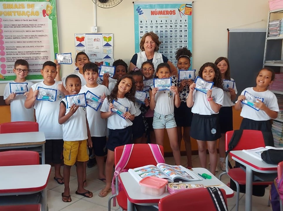 Garotada das escolas municipais recebeu o Kit de Higiene Bucal contendo acessórios capazes de manter a limpeza diária