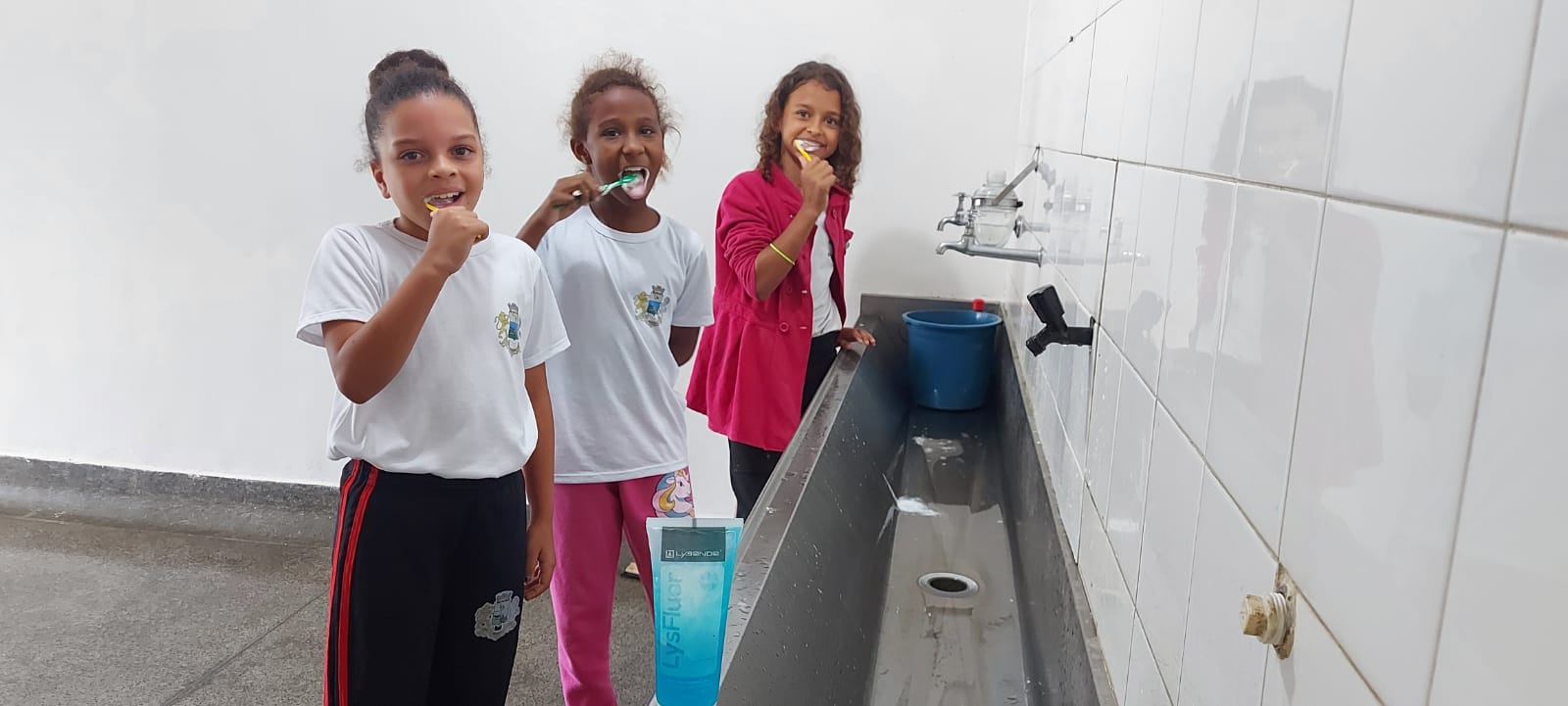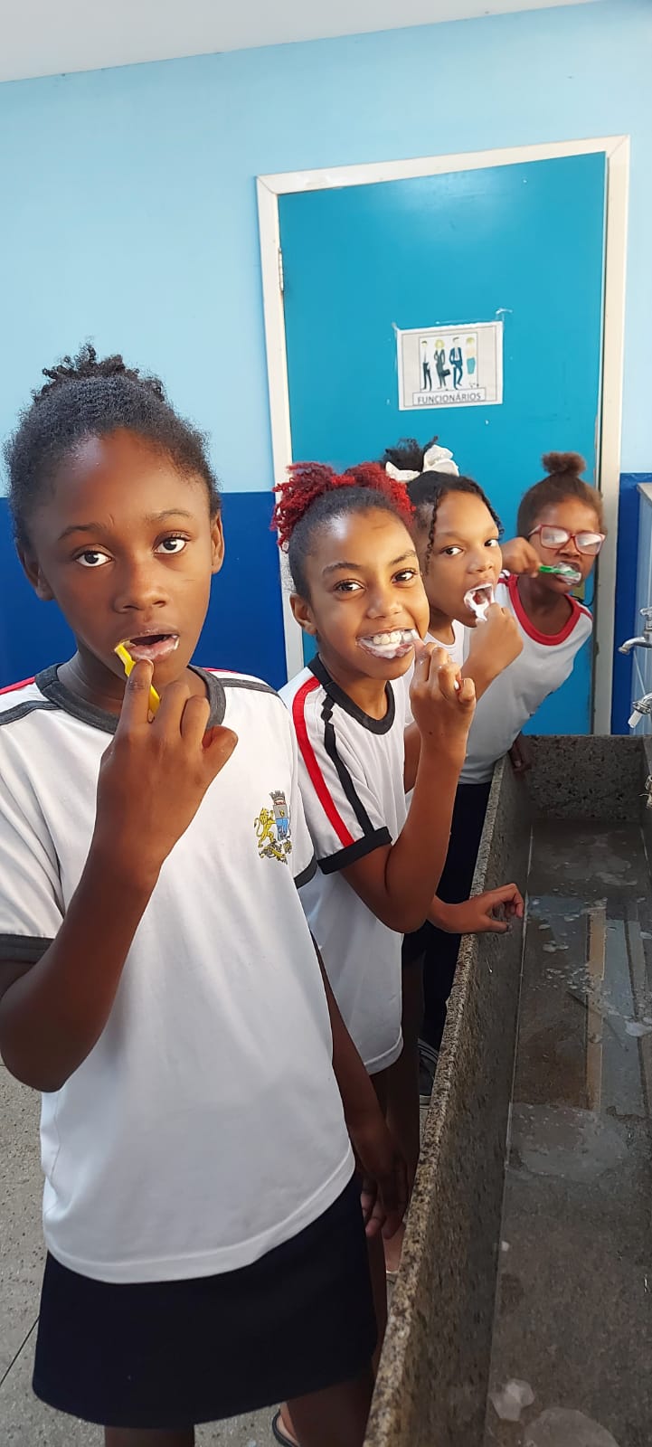 As meninas também mostraram que estão afiadas na hora de cuidar da higiene bucal nos educandários municipais