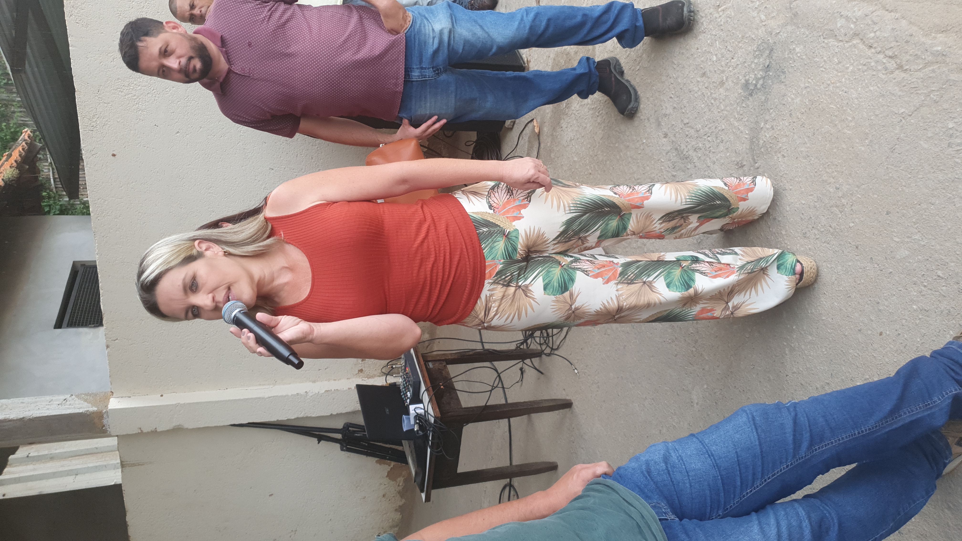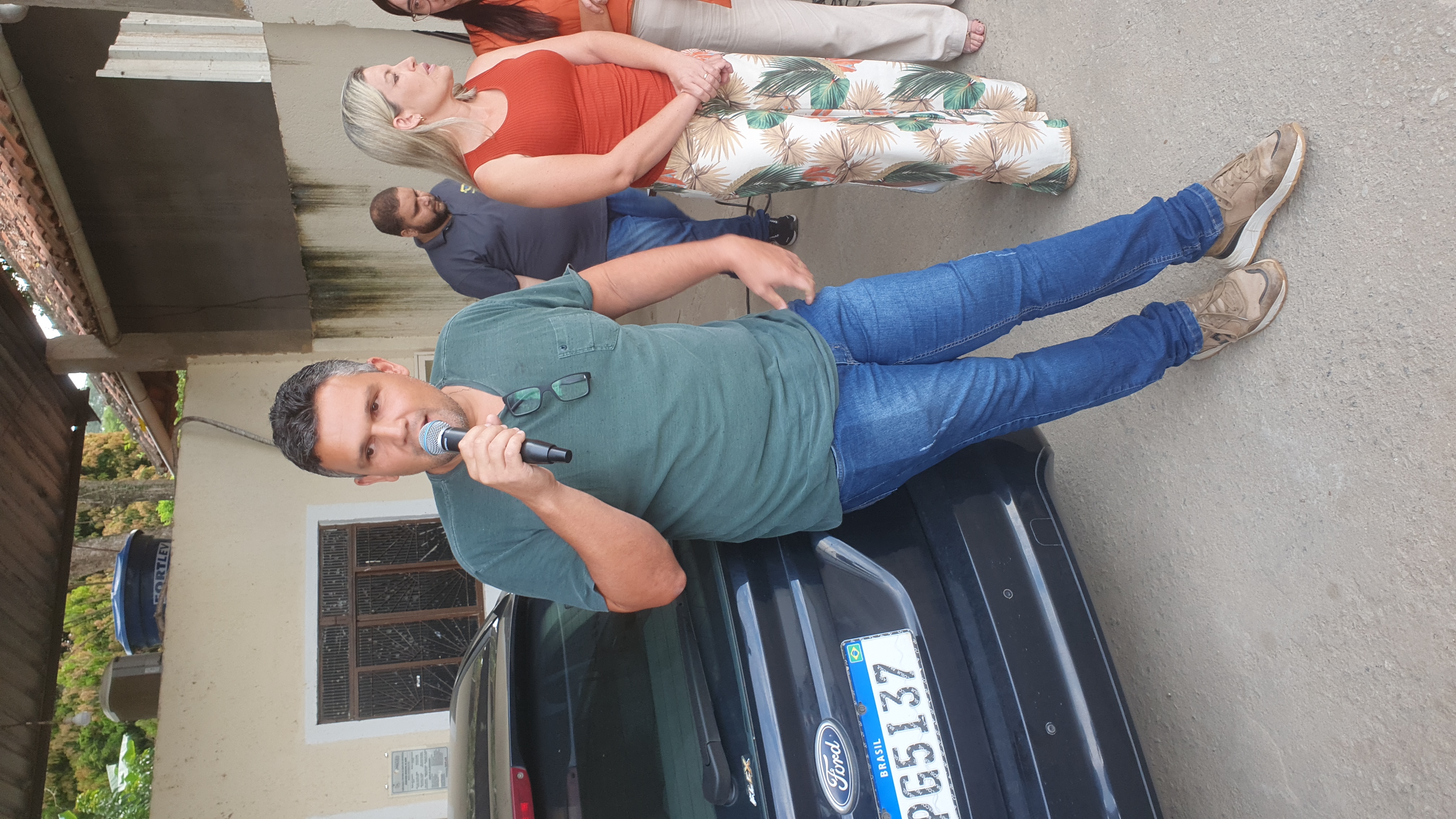 João Vitor Pontes, Michelle Bianchini, Ana Paula Gonçalves e o vereador Bruno Miranda com o comunicador Marcelo Borges