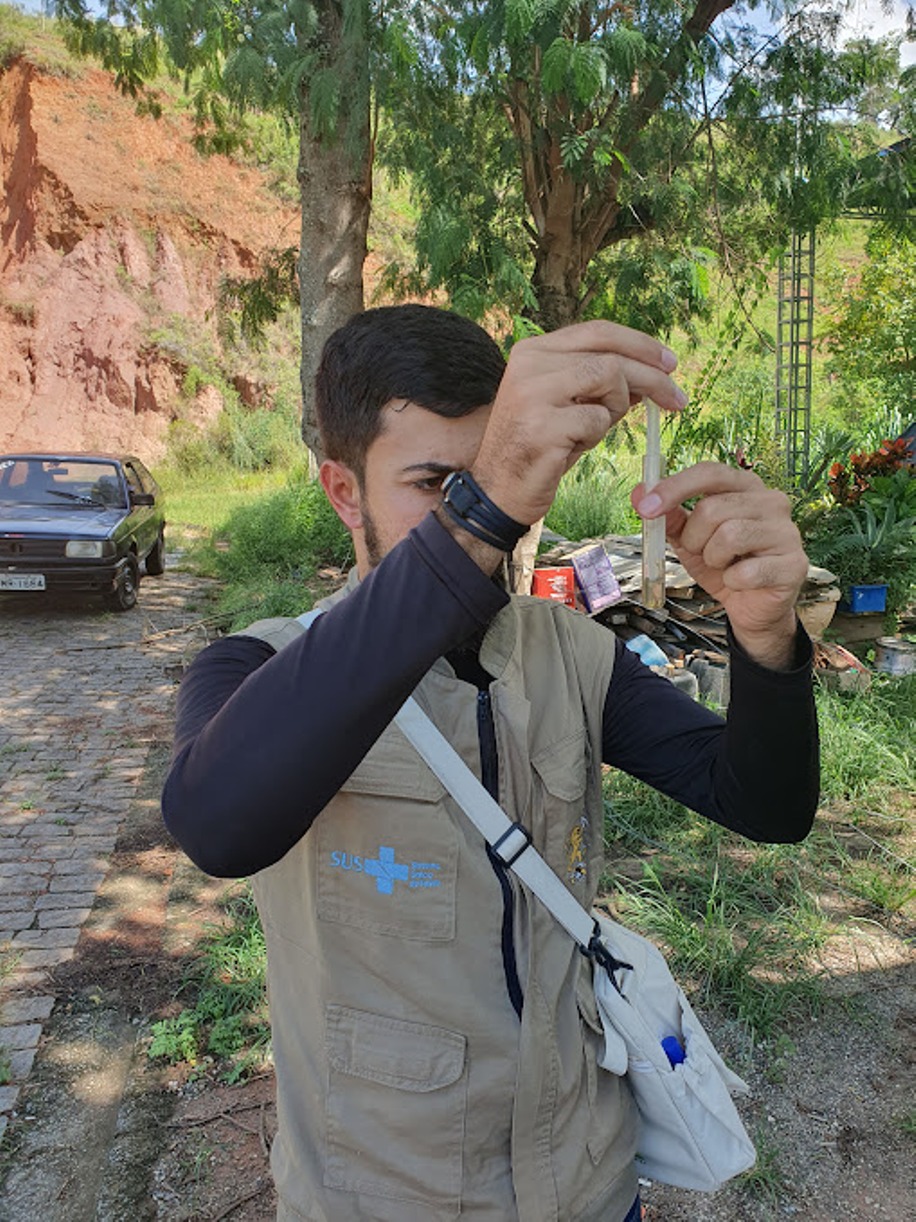 Profissionais de saúde recolheram tubitos com diversas amostras de larvas para identificar as espécies encontradas
