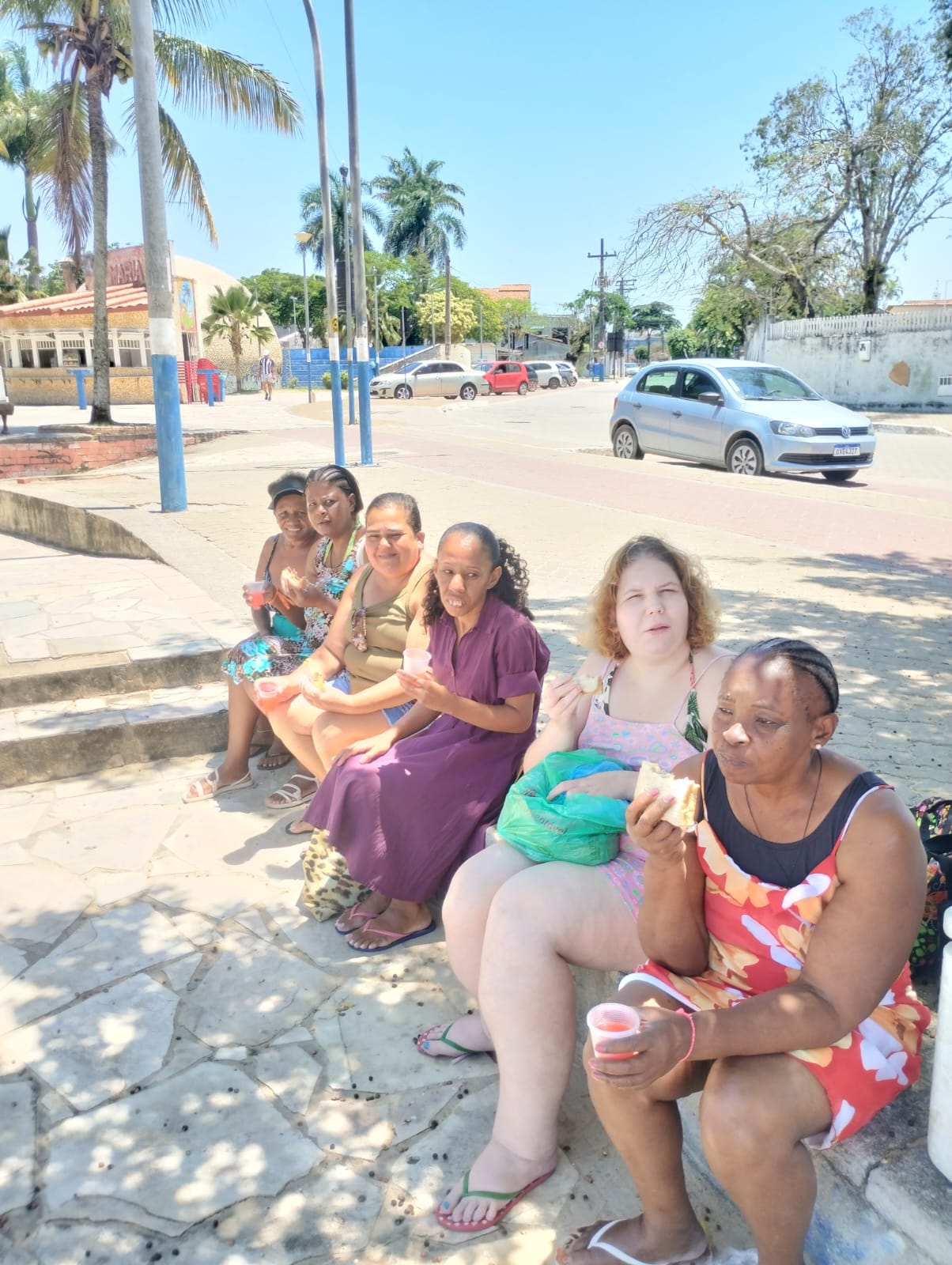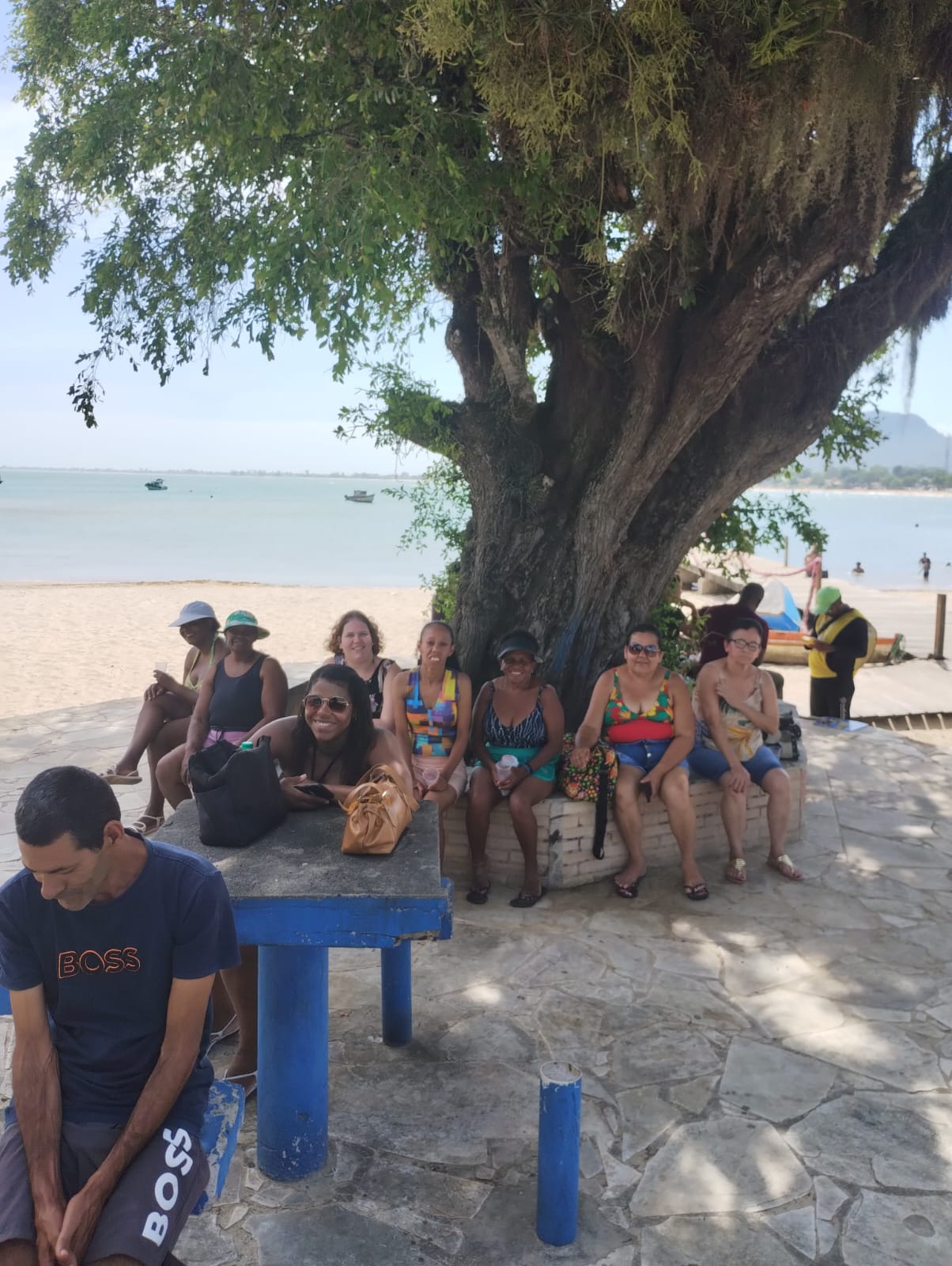Prestes a desfrutar da praia, os integrantes do CAPS se refrescam à sombra de uma frondosa árvore em Rio das Ostras
