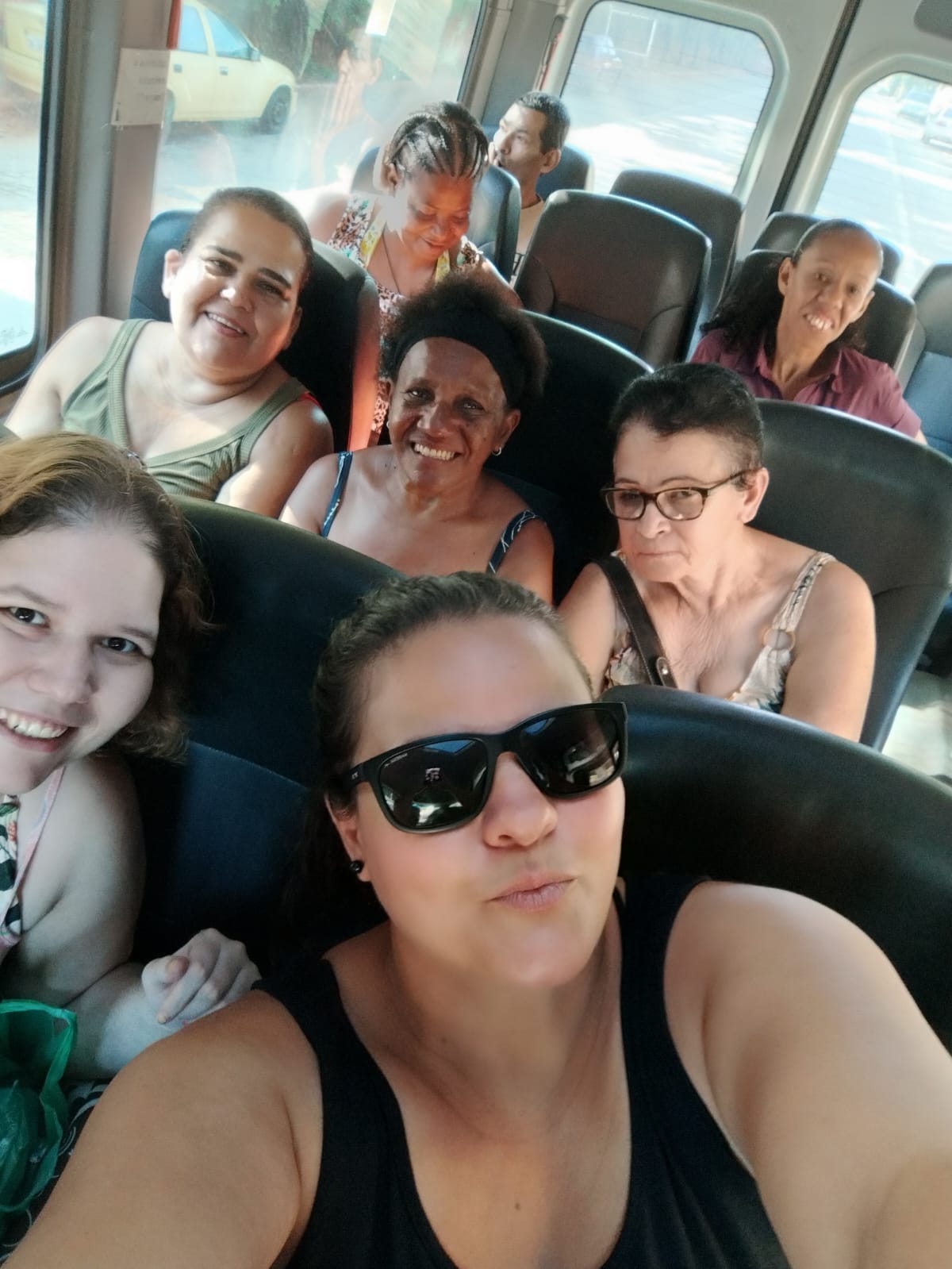 A psicóloga Viviane Tostes e os integrantes do CAPS/Macuco durante a viagem rumo à cidade praiana fluminense