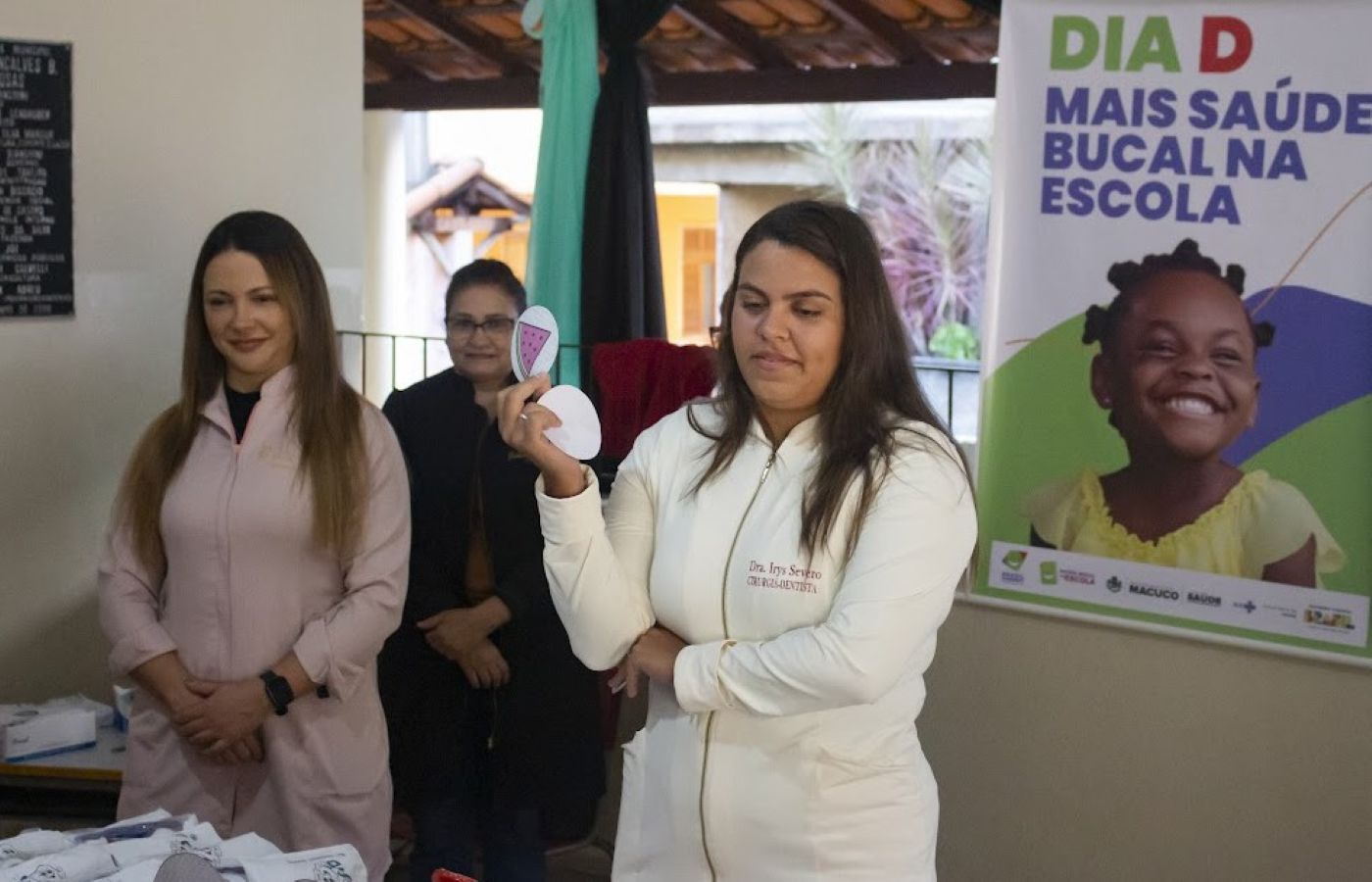 Nesta quinta-feira, dia 8 de maio, a Rede Municipal de Ensino de Macuco foi palco do ‘Dia D Mais Saúde Bucal’, uma mobilização da Secretaria de Saúde do município voltada à conscientização sobre a importância dos cuidados com a saúde bucal entre crianças e adolescentes. A ação faz parte de uma estratégia contínua para promover hábitos saudáveis desde a infância, reduzir desigualdades no acesso ao cuidado e integrar de forma efetiva as áreas da saúde e da educação.