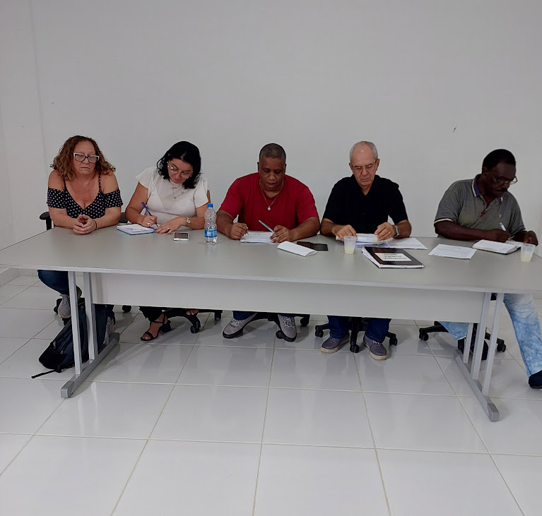 Mesa Diretiva da reunião realizada nesta quinta-feira, dia 12 de fevereiro, na sede da Secretaria de Saúde de Macuco
