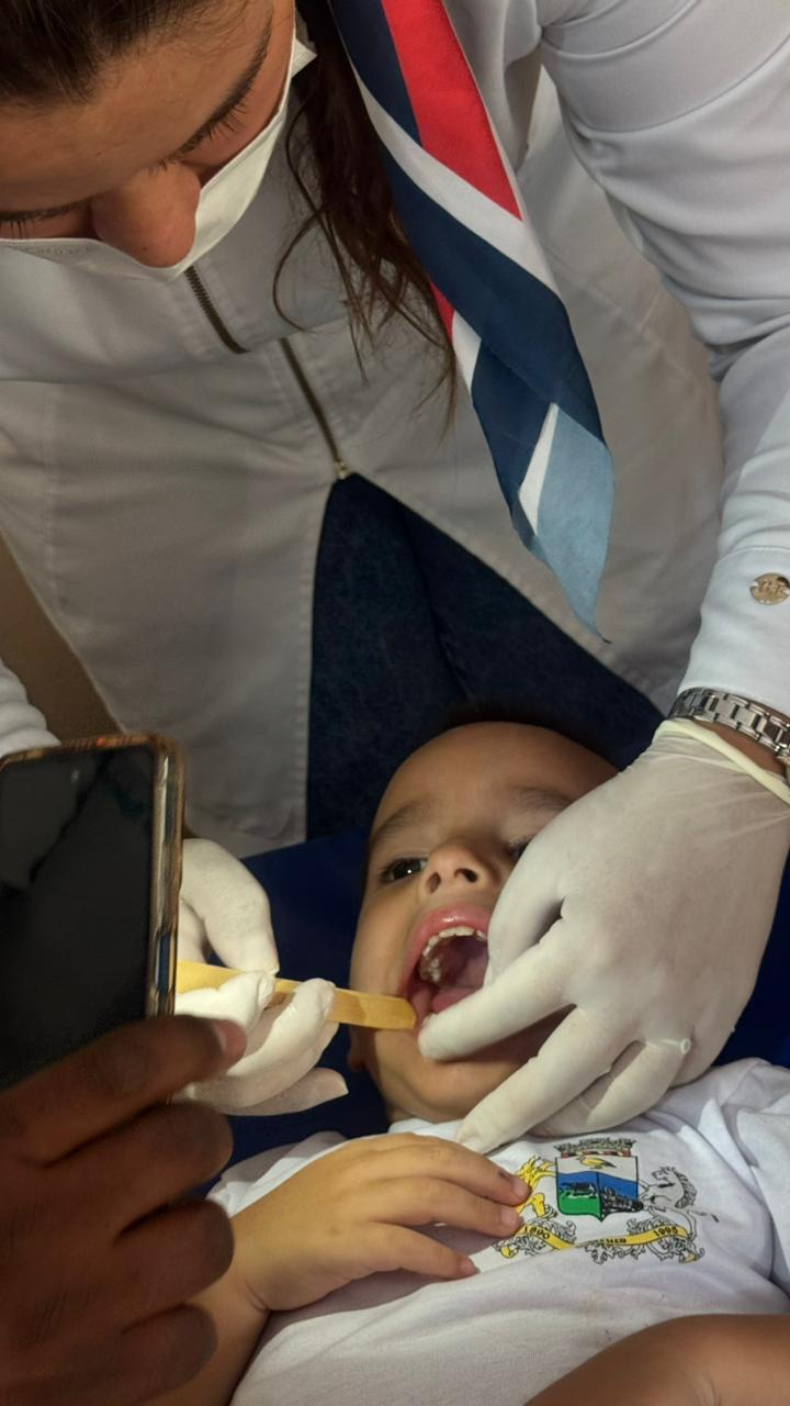 Dentista Shirle Falces proporcionou momentos de dedicação e cuidado com os pequeninos no Dia B da Saúde Bucal, num acolhimento peça-chave para a higiene bucal