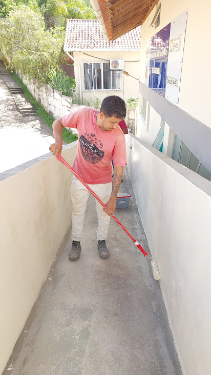 Essa imagem mostra o trabalho manual de quem está colocando a mão na massa para transformar o Centro de Saúde com um trabalho dedicado e feito com amor