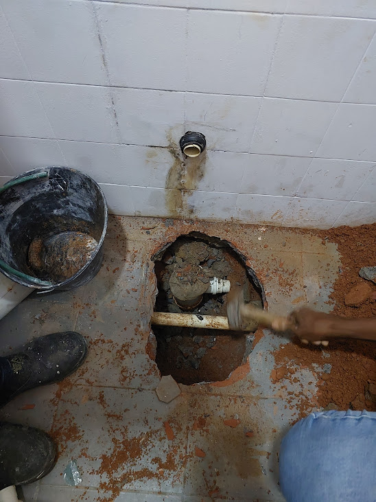 A foto mostra que a Prefeitura está cuidando de problemas crônicos e invisíveis aos olhos do público, mas que afetam diretamente o funcionamento das unidades