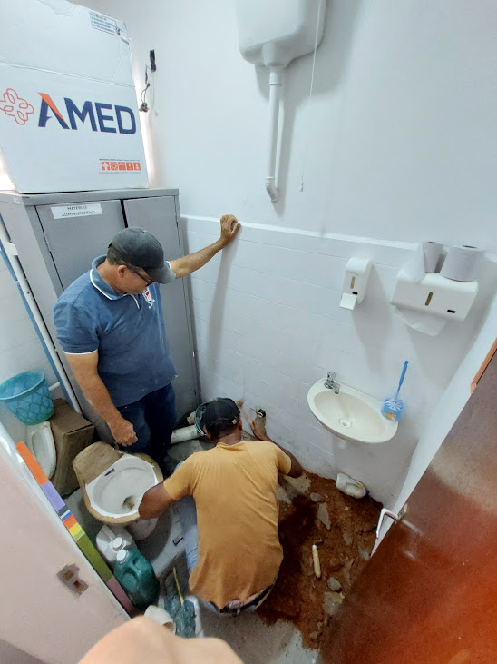 As equipes da Secretaria de Obras não param e o trabalho de manutenção nos banheiros das Unidades de Saúde exige dedicação e cuidado em cada detalhe