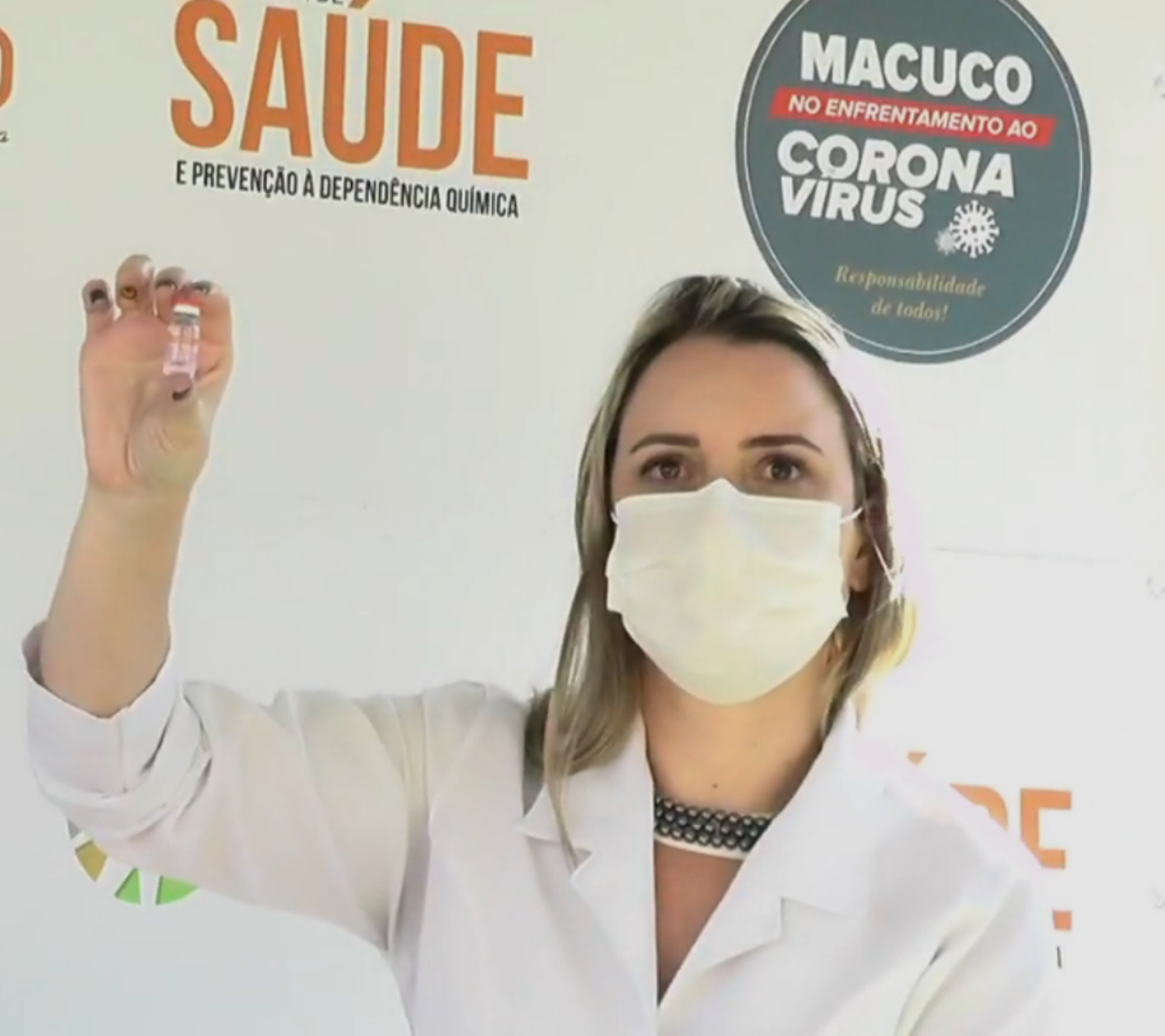 Num dia histórico para Macuco, o prefeito Bruno Boaretto liderou uma live nas redes sociais e prestou esclarecimentos sobre a vacina à população ao lado da vice-prefeita Michelle Bianchini, da subsecretária de Saúde Marlise Cerbino e da coordenadora do Centro de Triagem Lívia Nery, primeira macuquense a receber a dose.