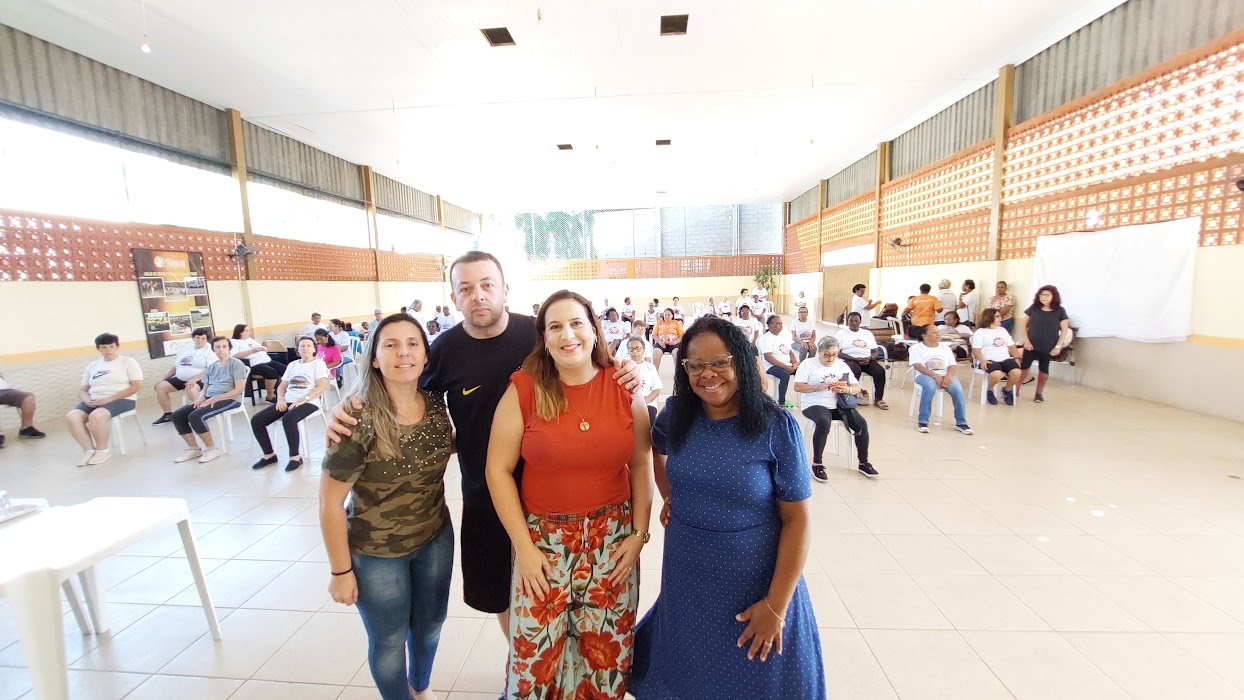 Foram muitas as dinâmicas de grupo em que a profissional de saúde mental conseguiu interagir com os expectadores de sua ótima palestra