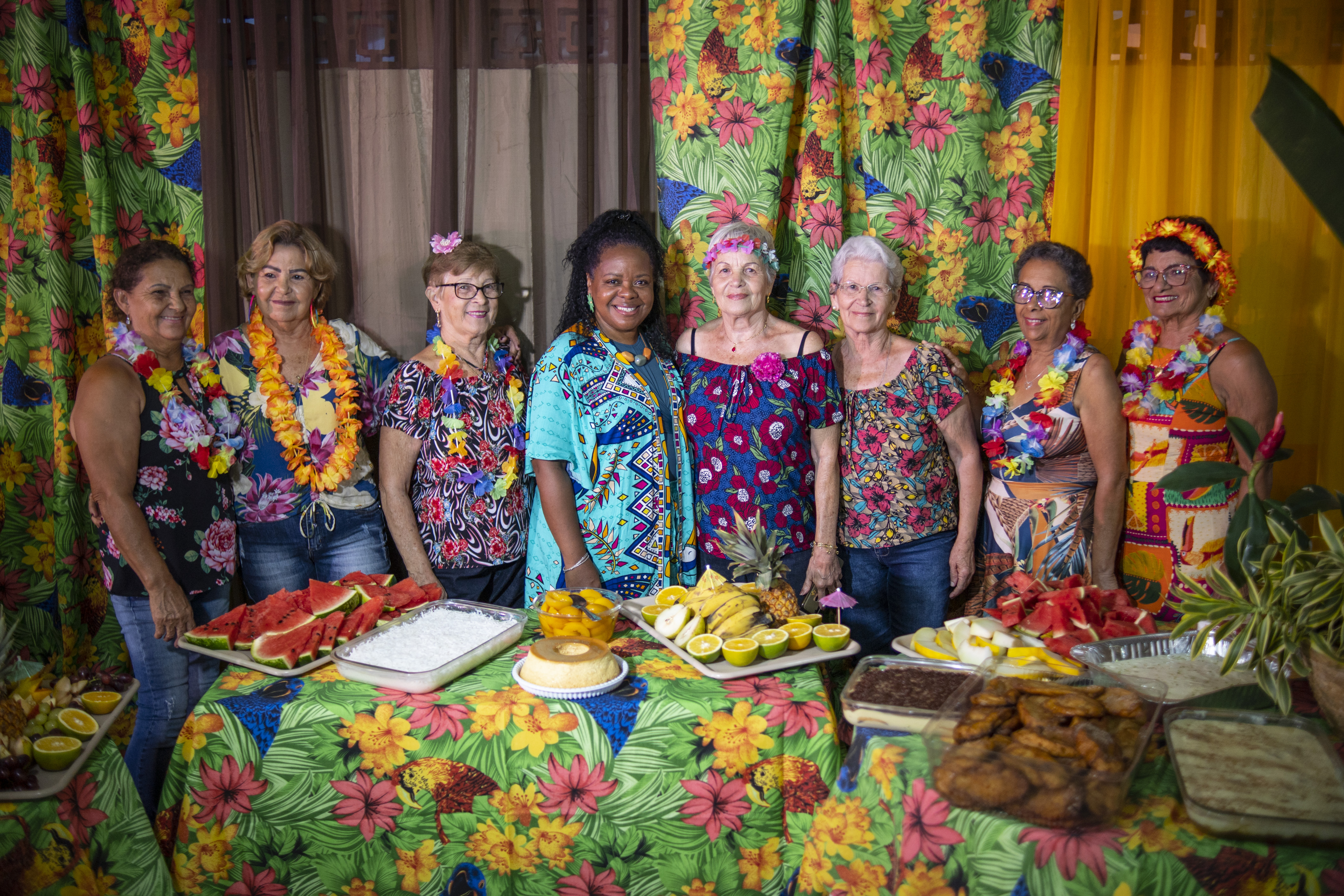 Não poderia faltar aquela mesa farta para receber a terceira idade durante a realização da Festa Tropical