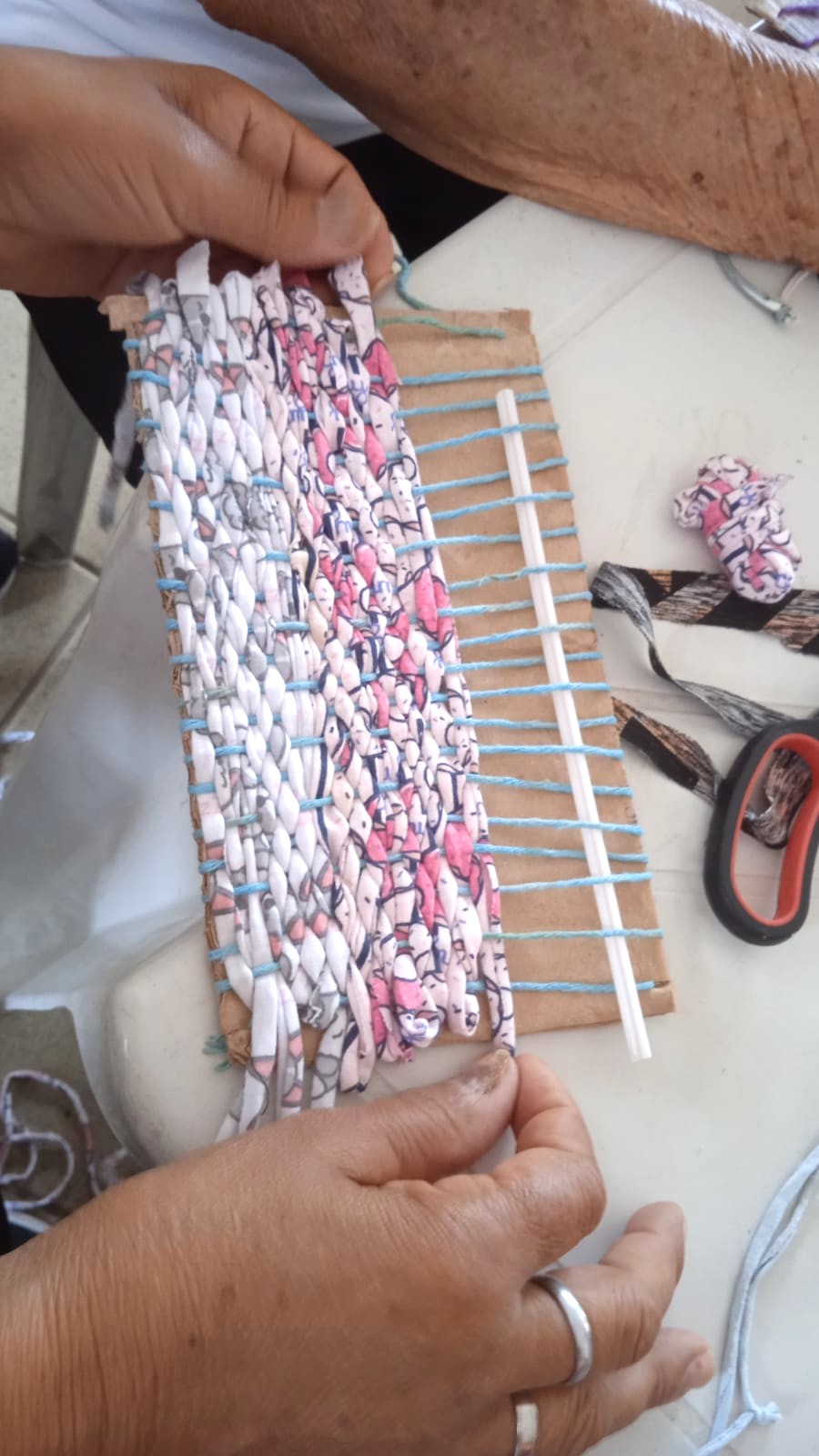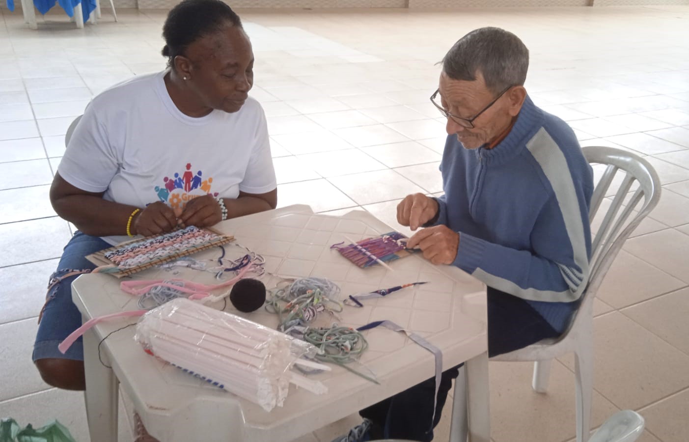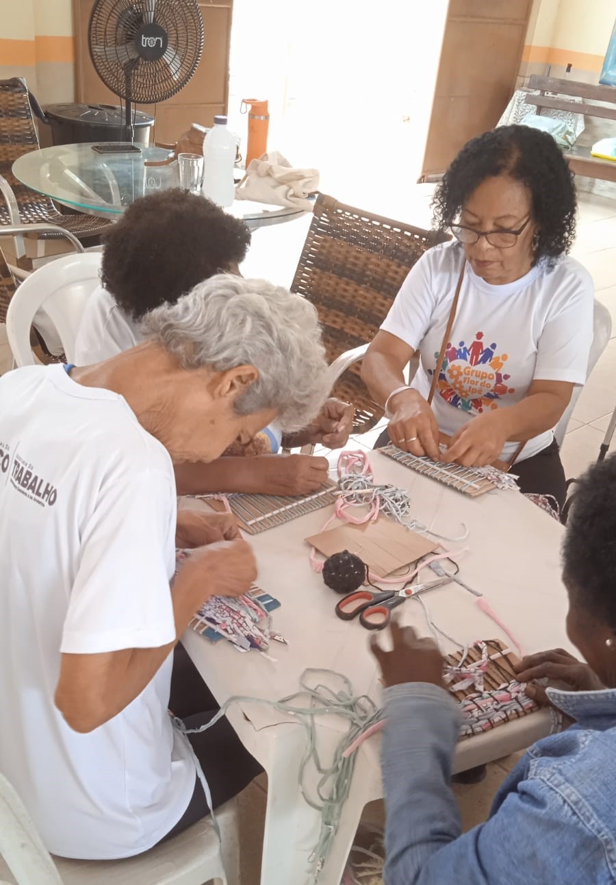 A sede do Grupo Flor do Ipê mostrou-se um lugar acolhedor para os participantes, que tiveram a chance de explorar esse universo quase lúdico do tear, com a certeza de que estavam prestes a adquirir conhecimentos valiosos em uma arte que abre novos horizontes em todas as direções. Utilizando materiais simples como papelão, retalhos de tecidos e linhas, o grupo entrou num mundo de criatividades e habilidades manuais.