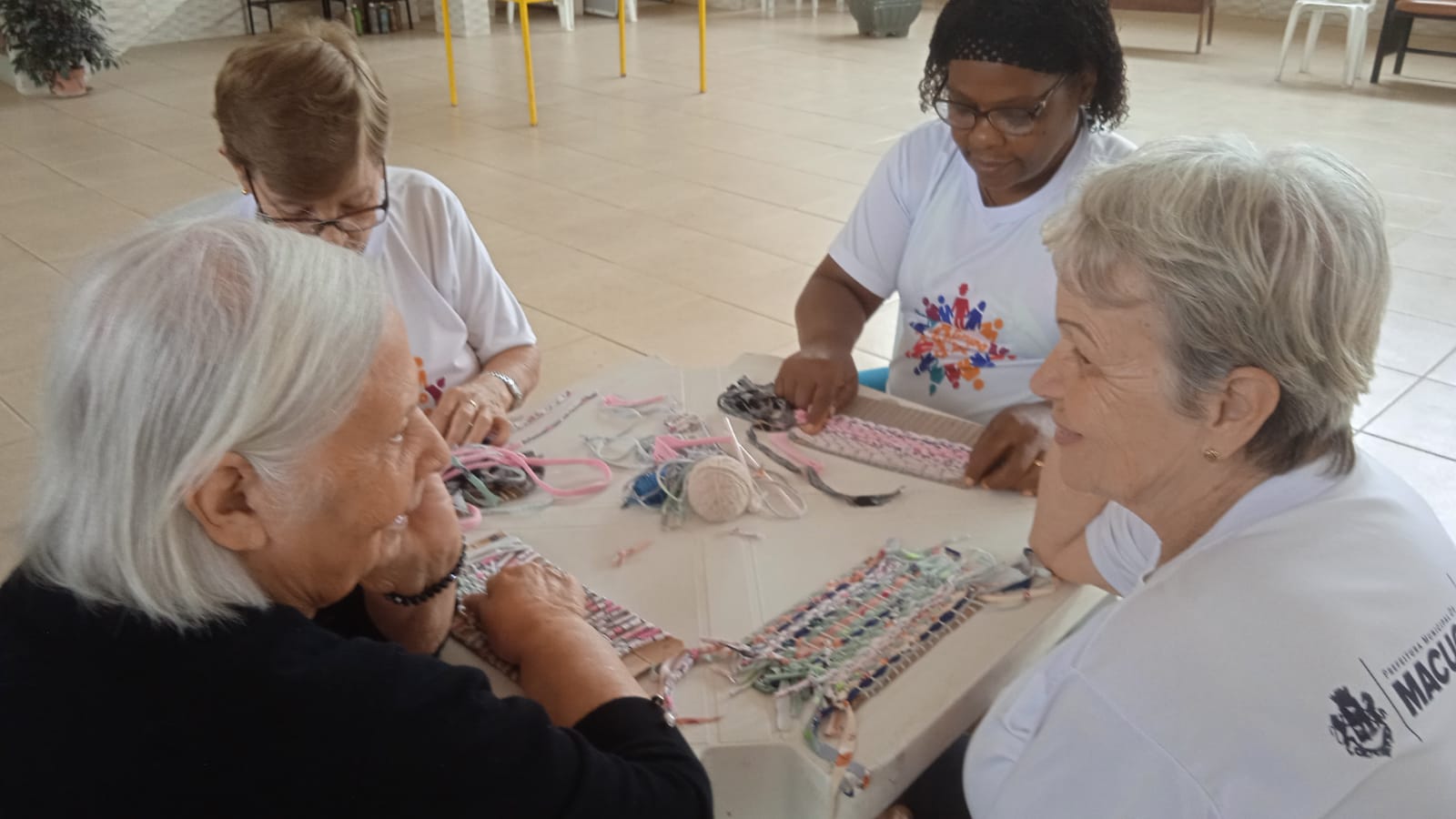 O início deste final de semana trouxe consigo uma dose extra de conhecimento e encanto para ‘os jovens da melhor idade’ de Macuco. Sob orientação da neuropsicopedagoga Leila Brito, os frequentadores habituais das atividades oferecidas pela Secretaria de Trabalho, Envelhecimento Saudável e Juventude mergulharam nos segredos iniciais do fascinante mundo do Artesanato em Tear.