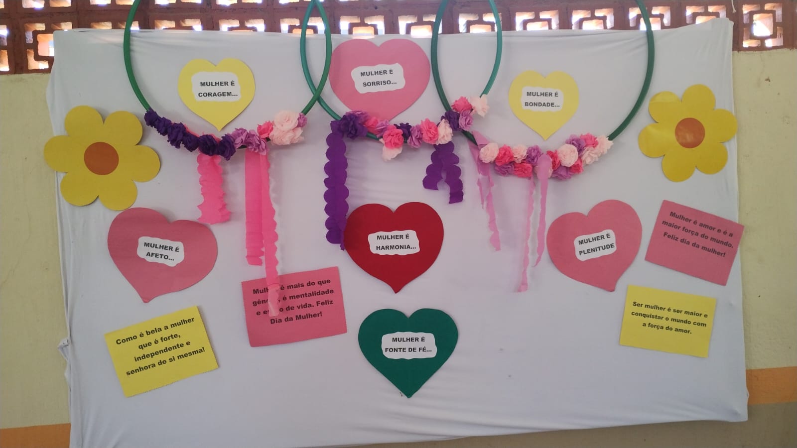 Painel receptivo exibia mensagens enaltecendo a mulher mostrando que as mães são o sustentáculo da base familiar