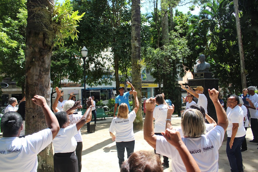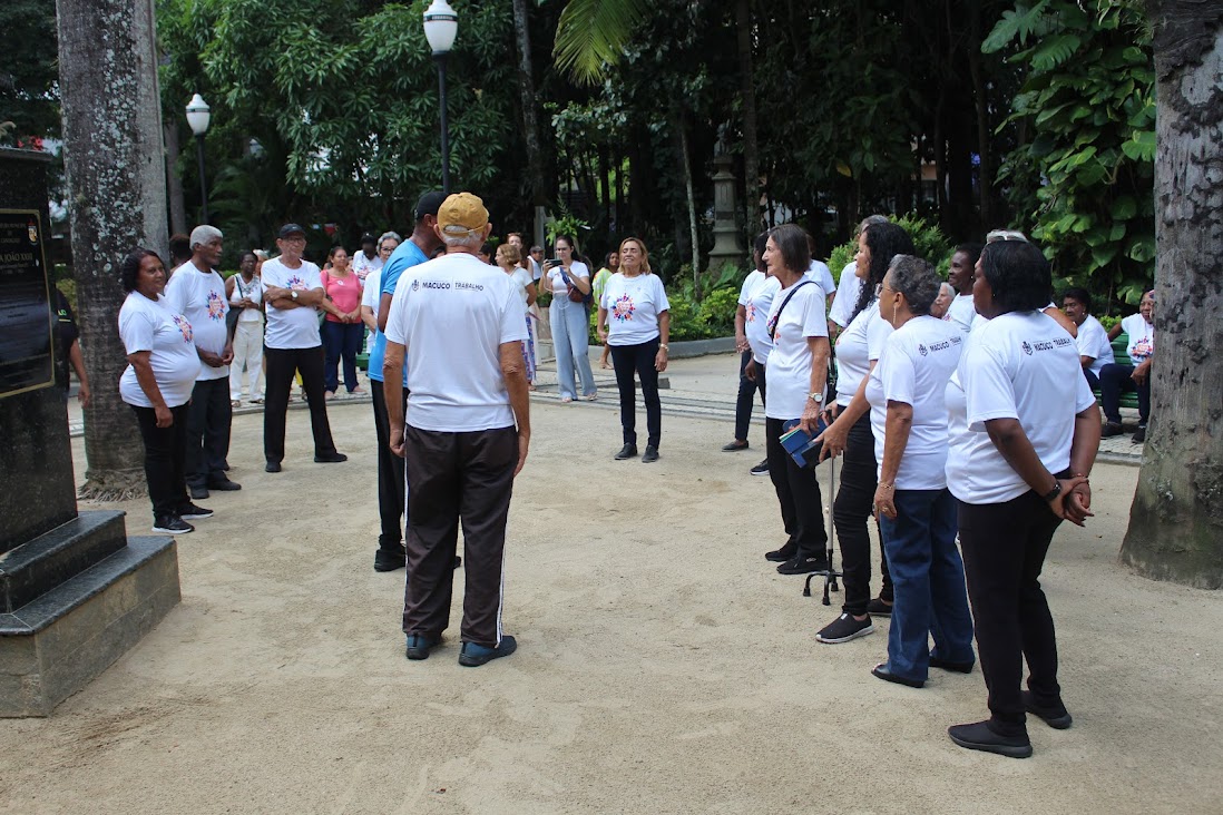Os ‘jovens de ontem’ de Macuco também participaram de atividades na Praça dos Melros, em Cantagalo, ponto turístico tradicional do município