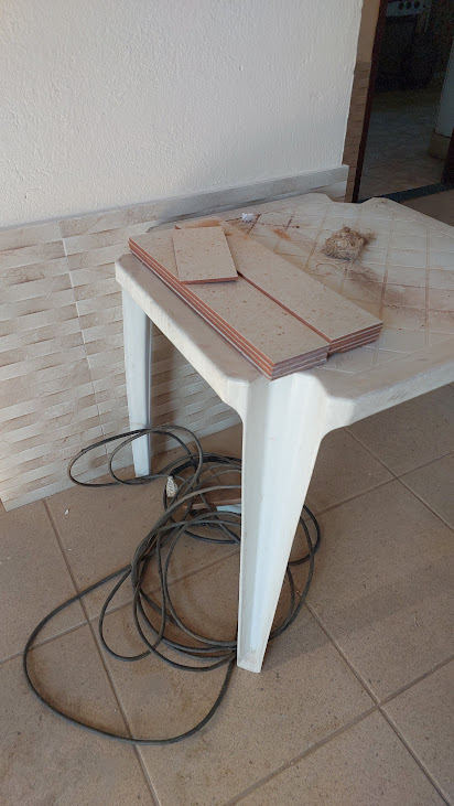 Para adequar o piso a ser assentado em substituição àquele avariado, os profissionais vão cortando parte das peças para realizar sua colocação