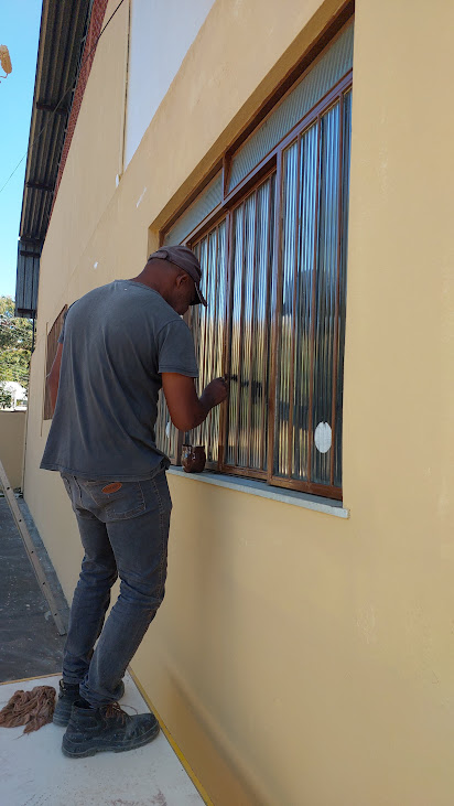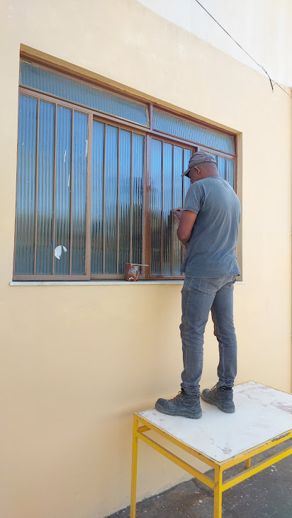 O servidor municipal demonstrando zelo e habilidade ao cuidar de uma das janelas do espaço dedicado a acolher a melhor idade de Macuco