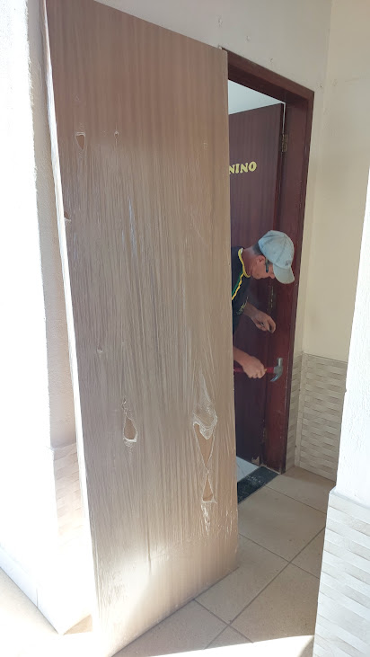 No interior do prédio, também há servidores cuidado da parte estrutural, incluindo os reparos nas portas